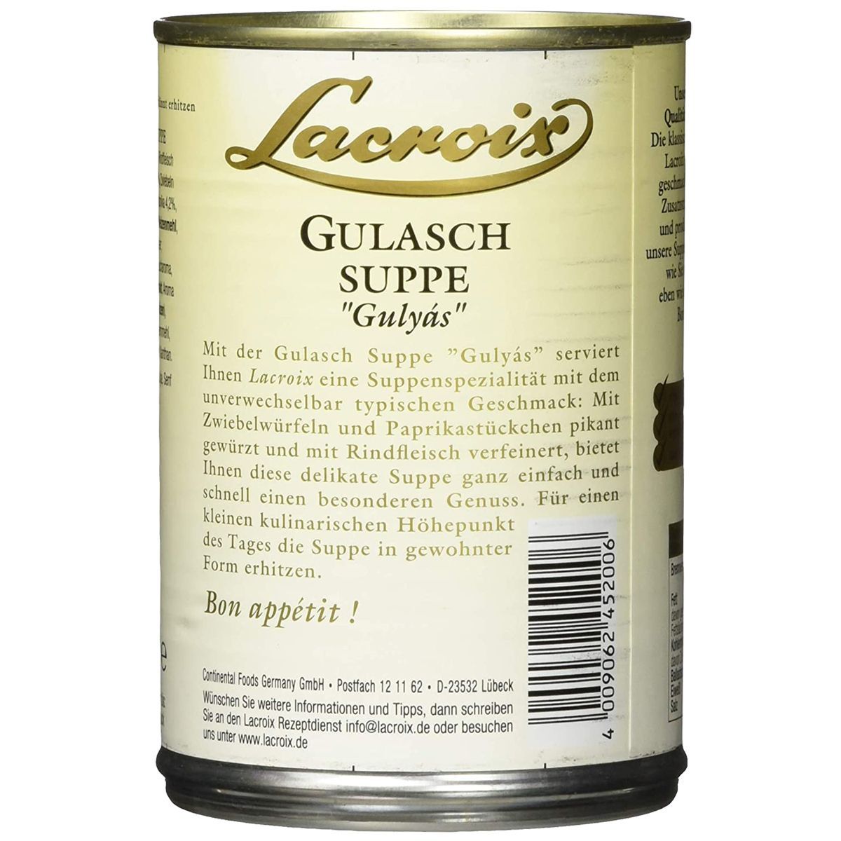 Lacroix Gulasch Suppe zartes Rindfleisch pikant gewürzt 400ml