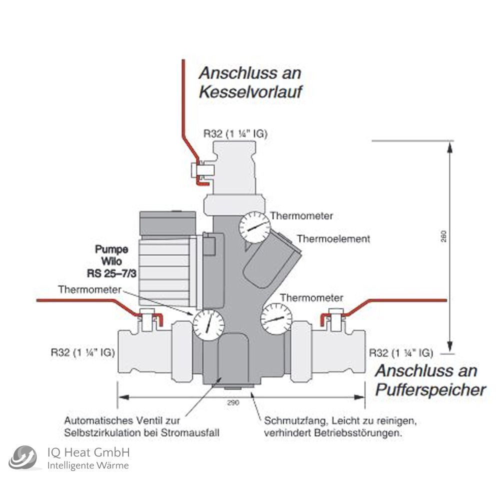 Laddomat M120 mit Wilo Yonos Para 25 8/3 Thermische Rücklaufanhebung RTA Atmos