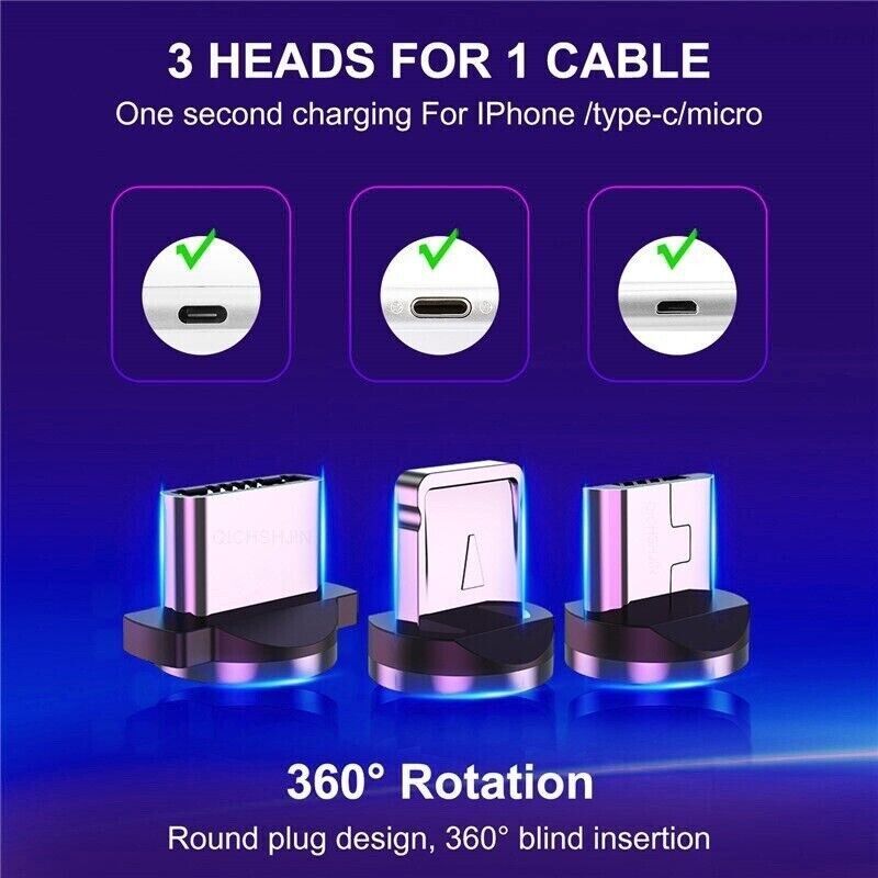 Ladekabel für Samsung Handy USB C Typ-C Micro iPhone Huawei Xiaomi Magnet LED