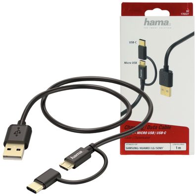 Hama 2in1 Ladekabel Daten-Kabel Micro-USB + USB-C Adapter Ladegerät Lader Kabel