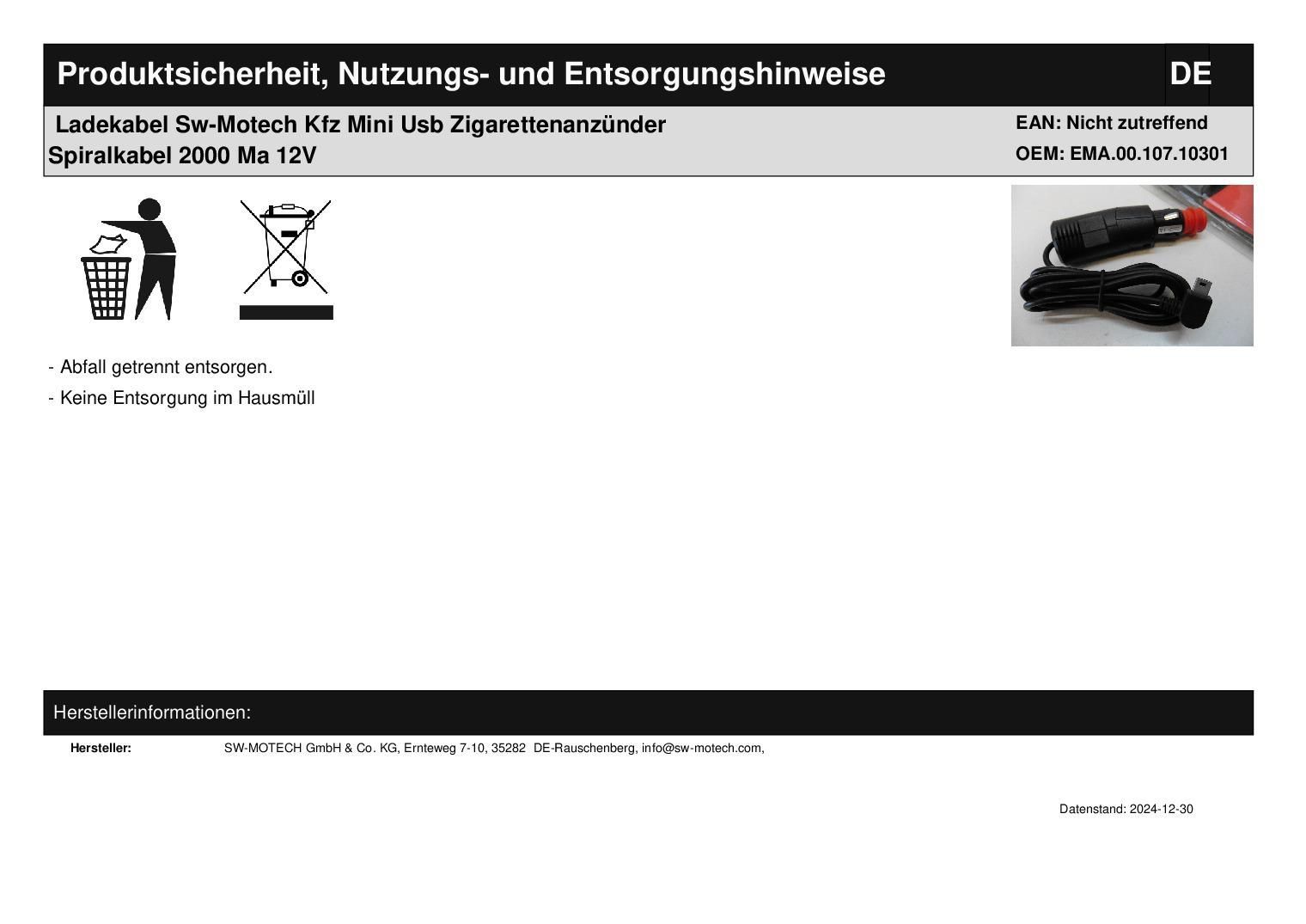 Ladekabel Sw-Motech Kfz Mini Usb Zigarettenanzünder Spiralkabel 2000 Ma 12V