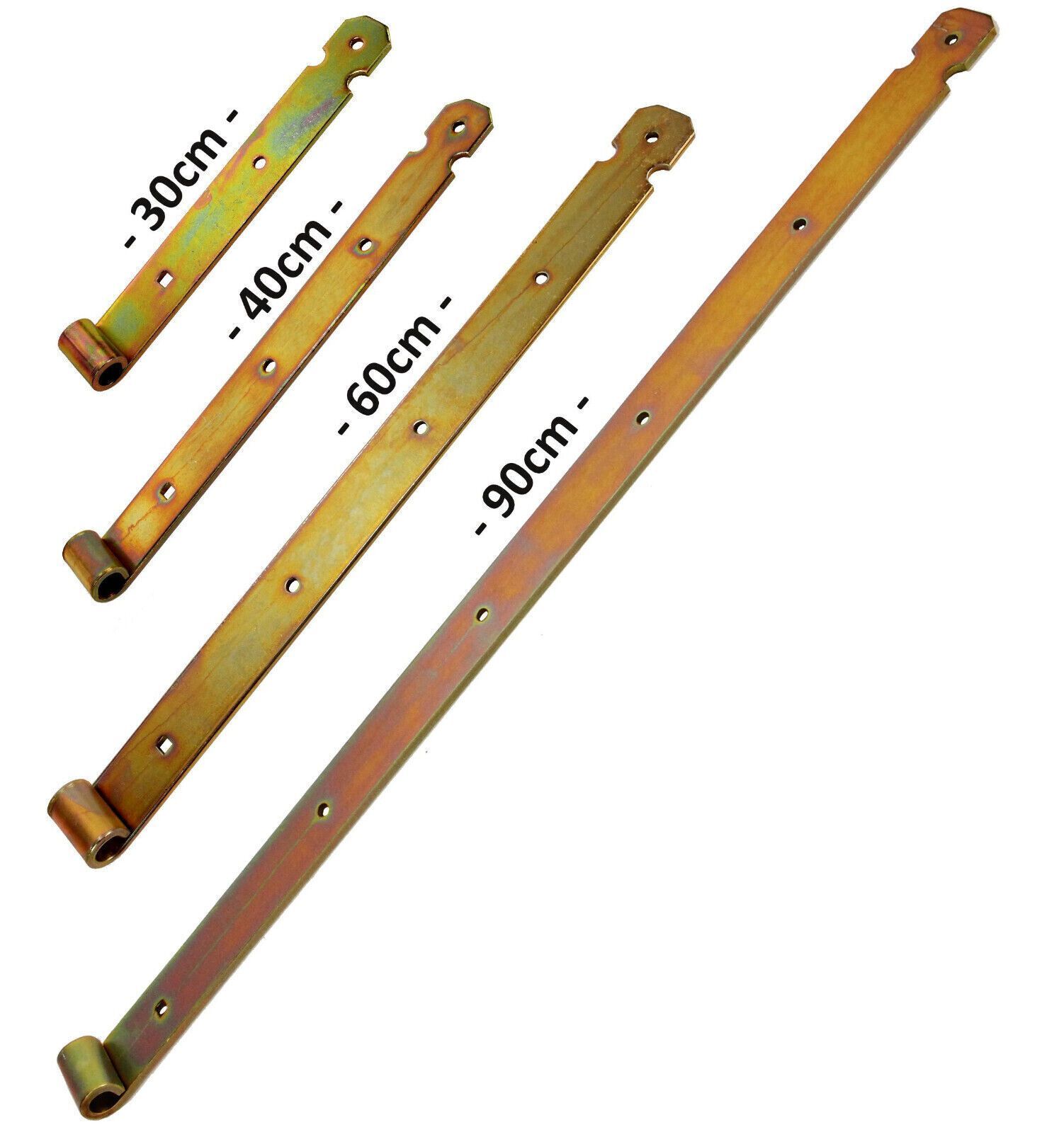 Ladenbänder & Kloben in verschiedenen Längen Beschreibung In besonders schwerer Ausführung für 16mm Kloben Ladenbänder, gelb verzinkt für Kloben mit 16mm Dorn in verschiedenen Längen wählbar (30, 40,60 & 90cm) wahlweise mit oder ohne Kloben lieferbar (mit 16mm Dorn) besonders hohe Materialst