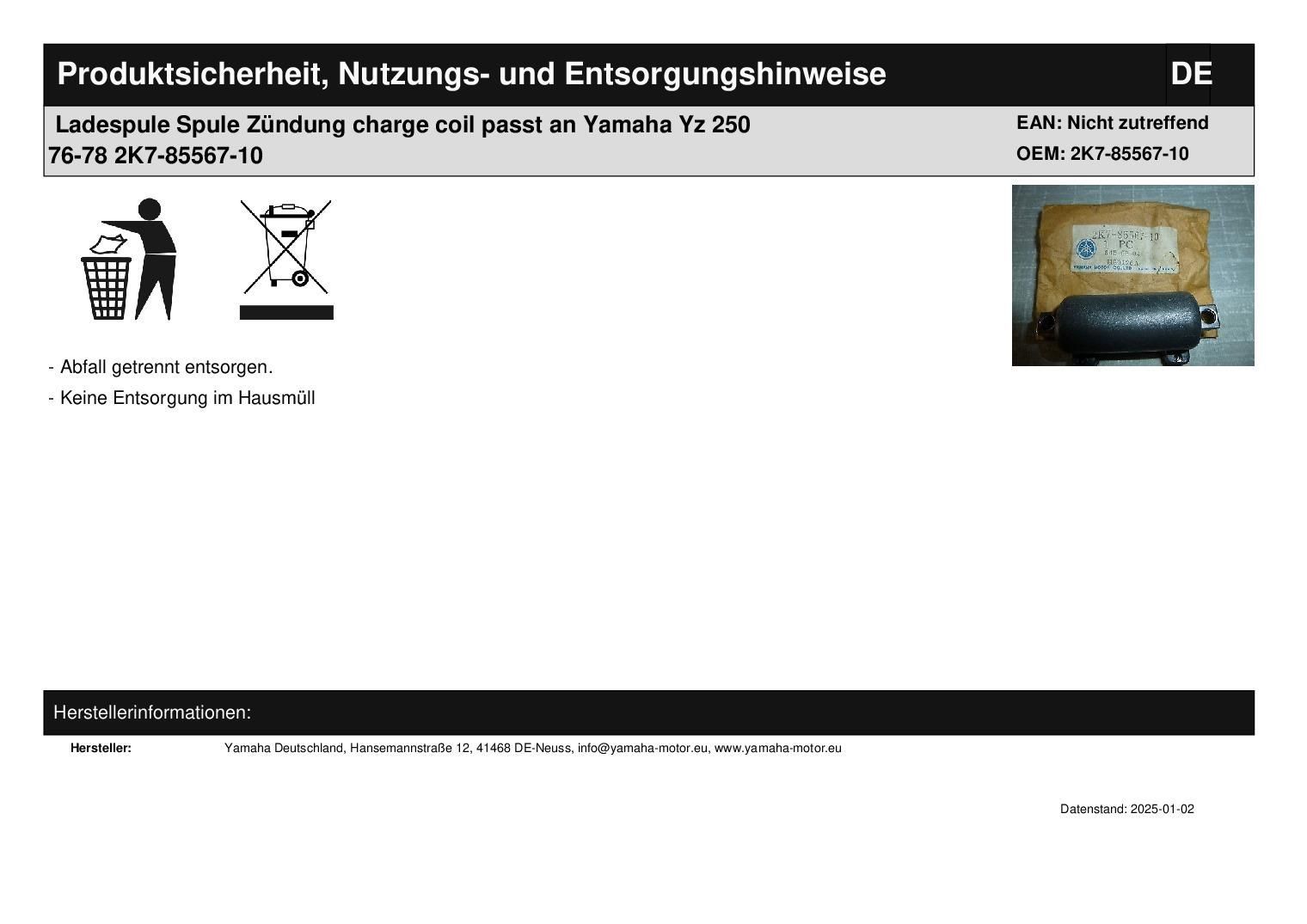 Ladespule Spule Zündung charge coil passt an Yamaha Yz 250 76-78 2K7-85567-10