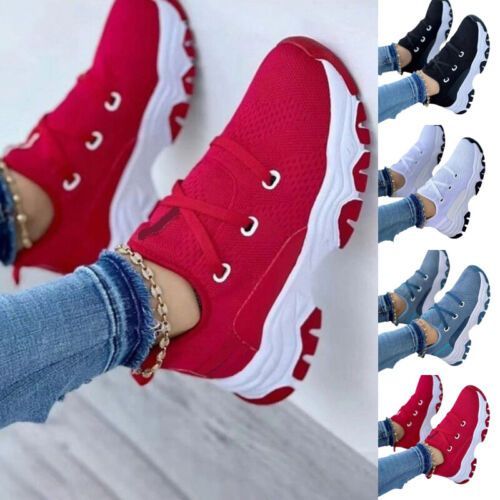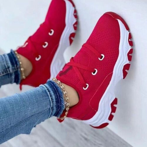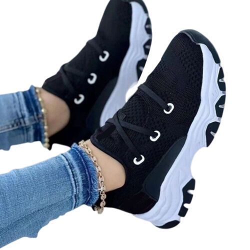 Ladies Sneaker Netz Wanderschuh Frauen Rutschfest Sport Schnuren Sportschuhe