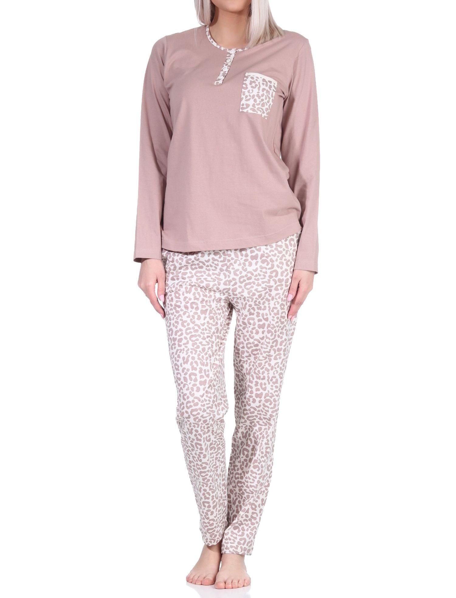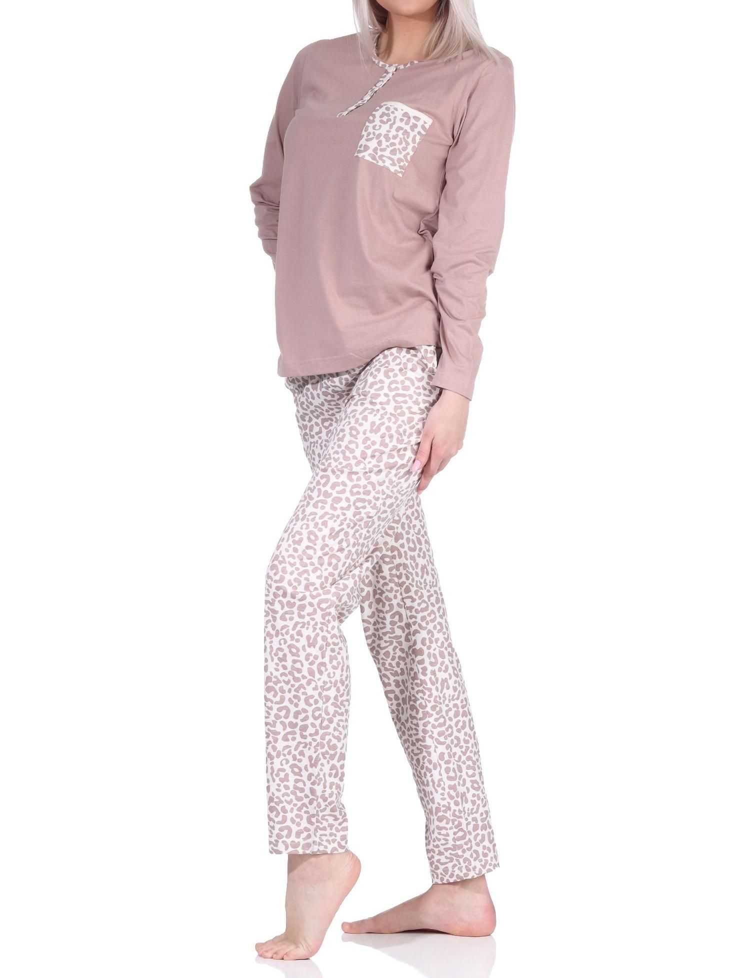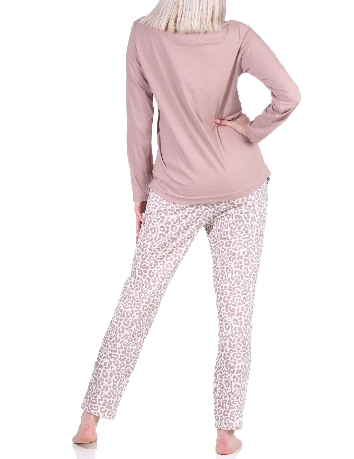 Lässiger Damen Pyjama langarm Schlafanzug in Leo-Print Optik - 122 201 90 444