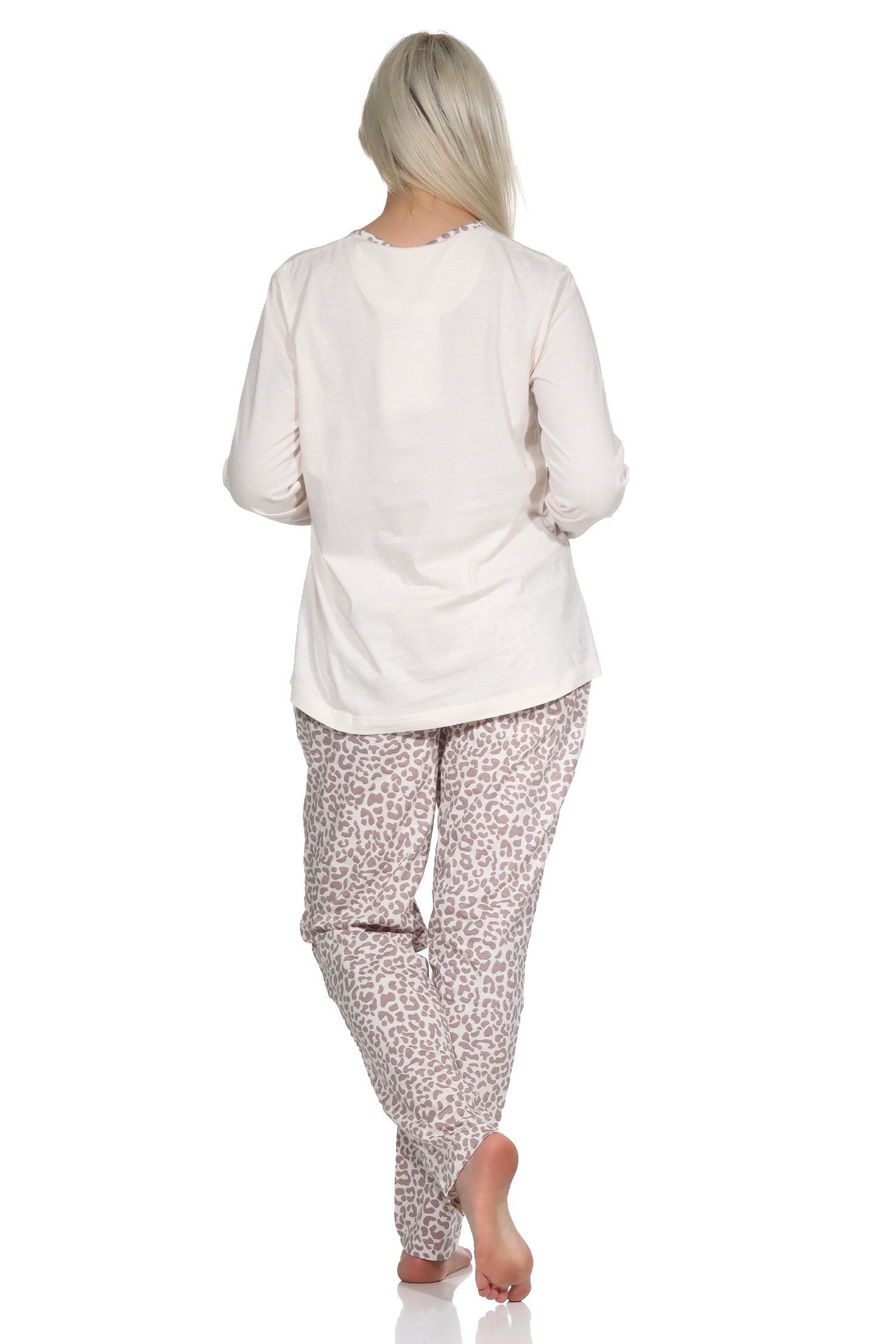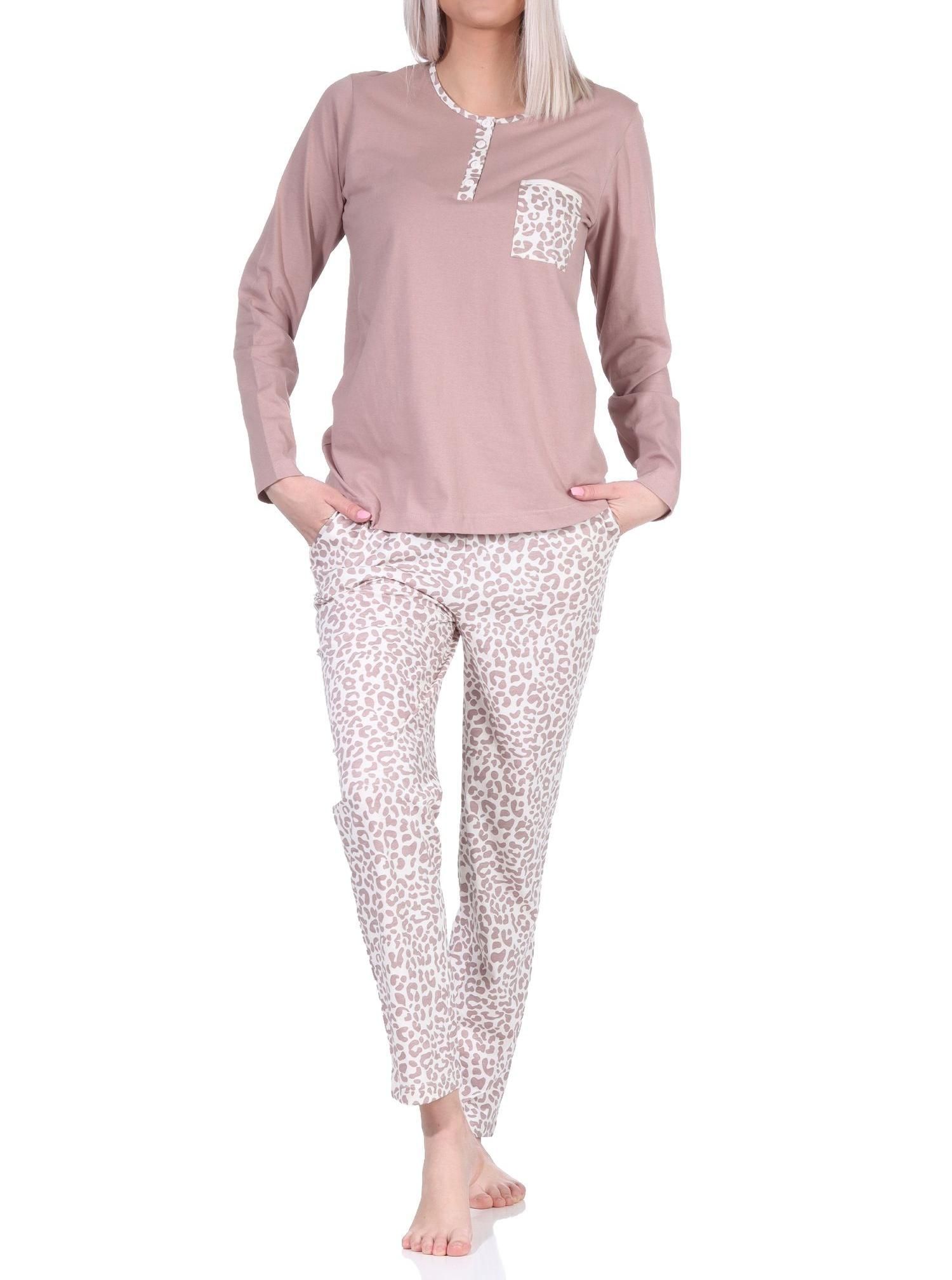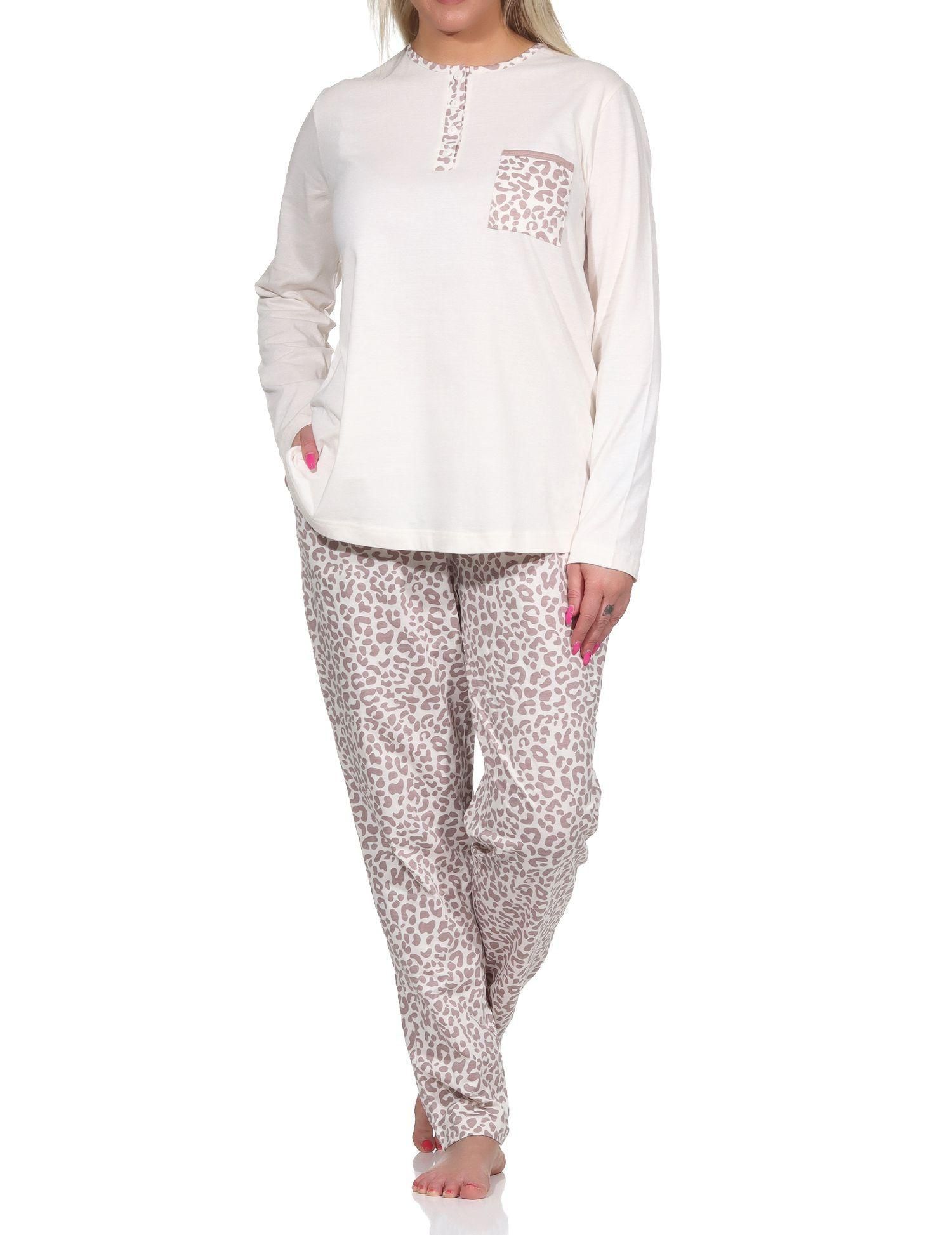 Lässiger Damen Pyjama langarm Schlafanzug in Leo-Print Optik - 122 201 90 444
