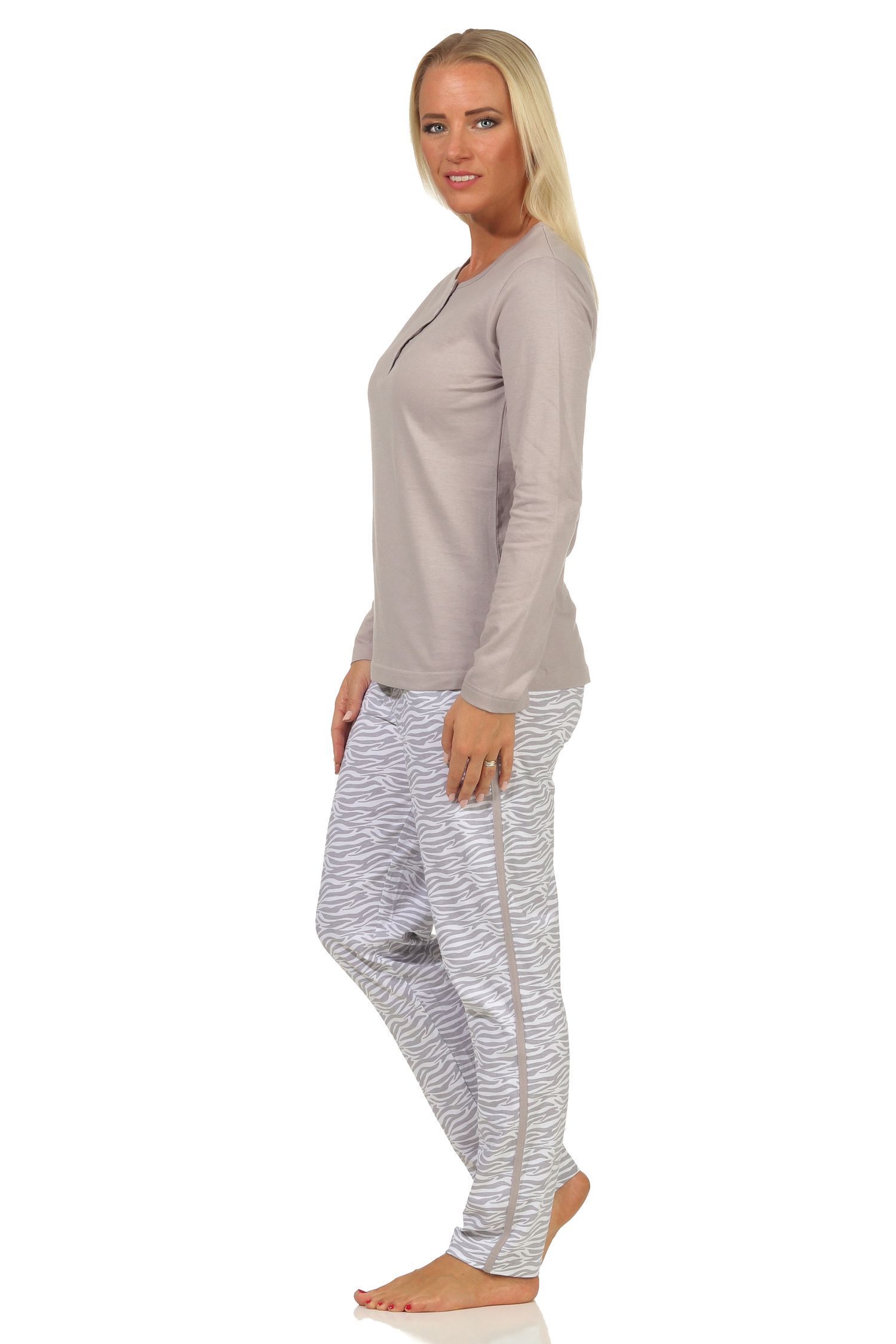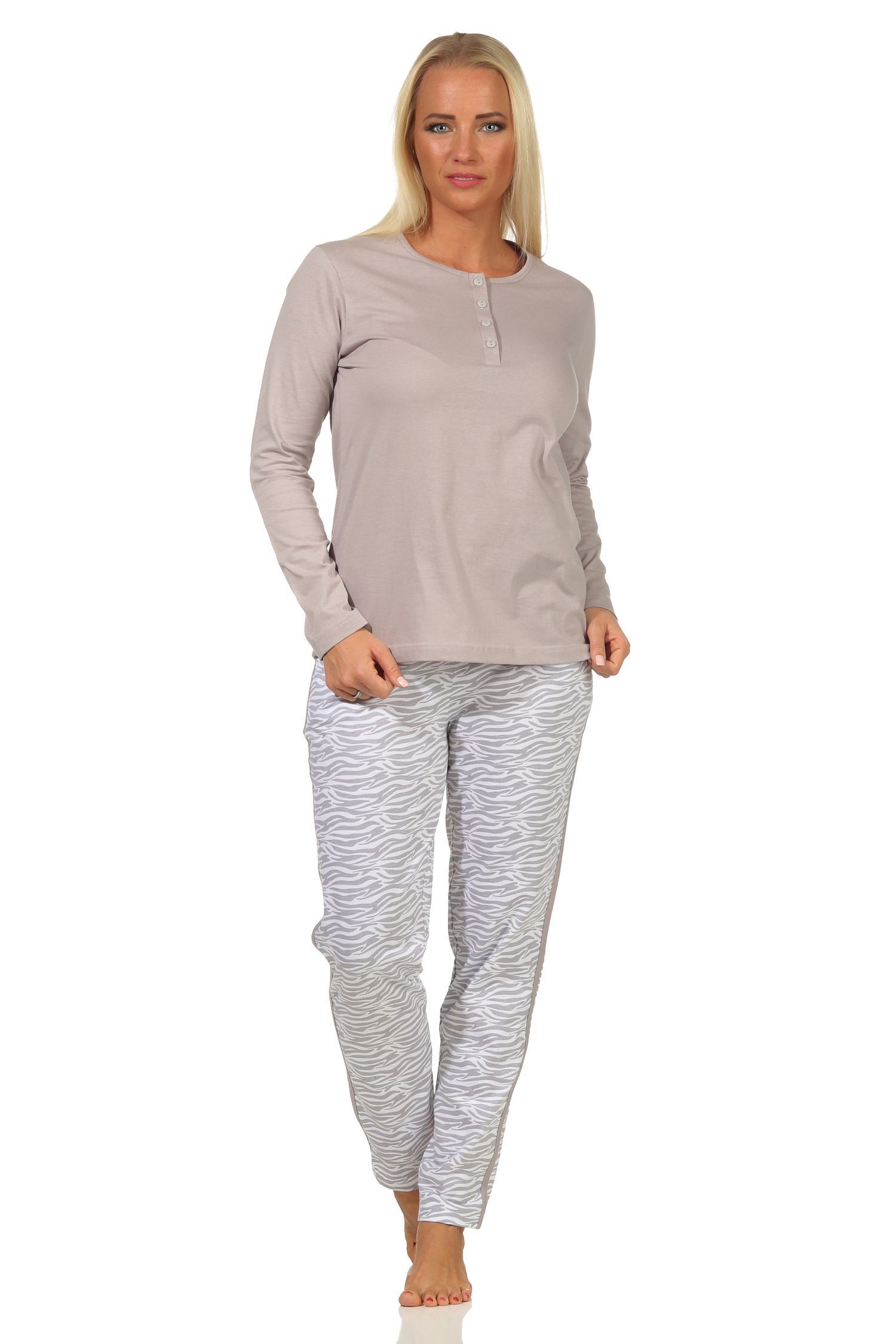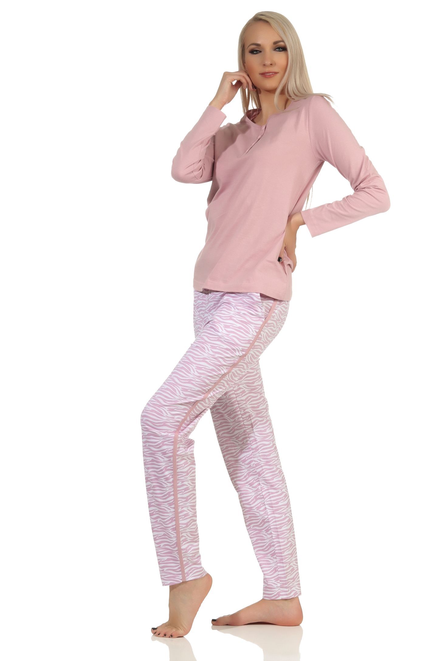 Lässiger Damen Pyjama, Pyjamahose mit seitlichen Streifen am Bein + Animal-Muster