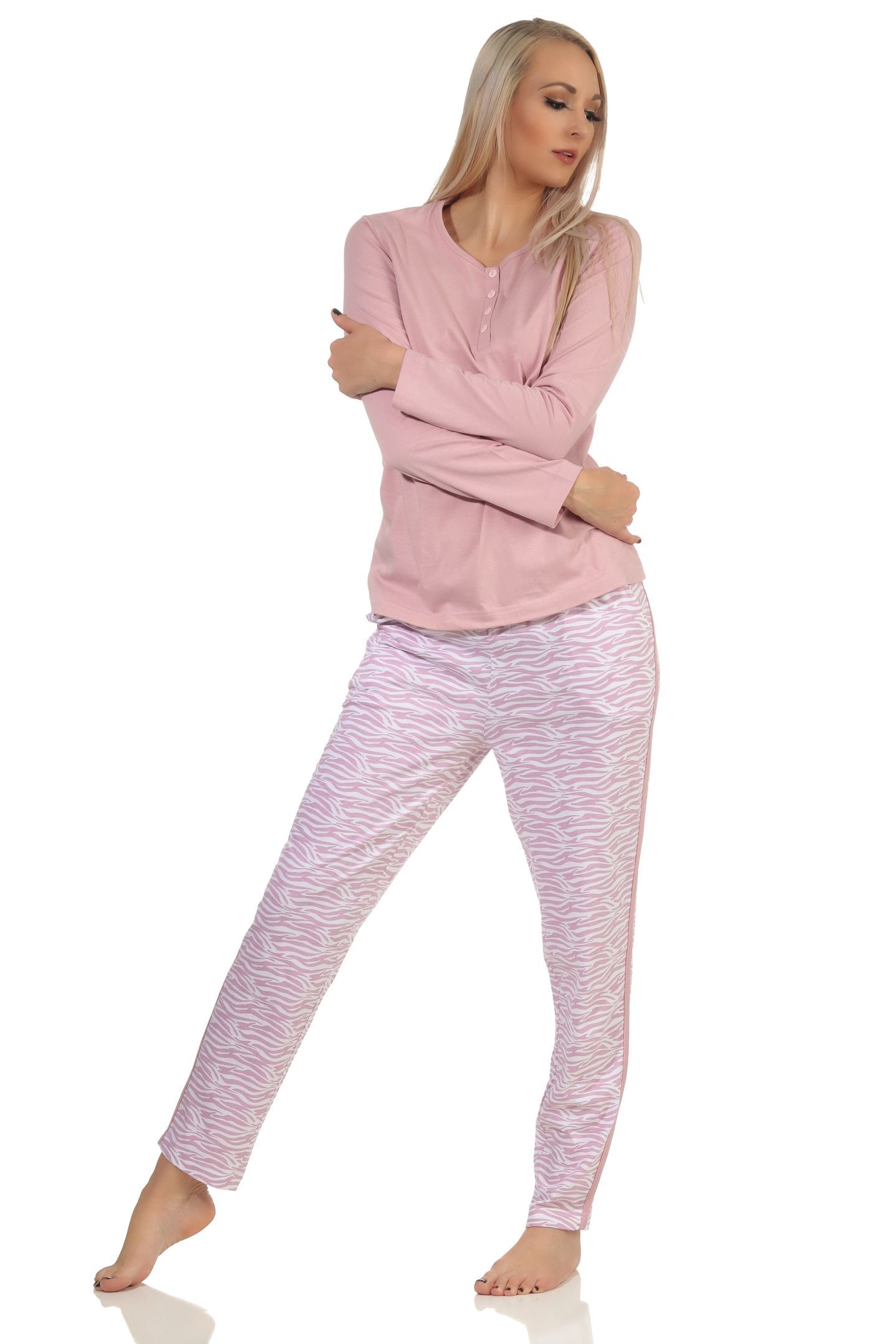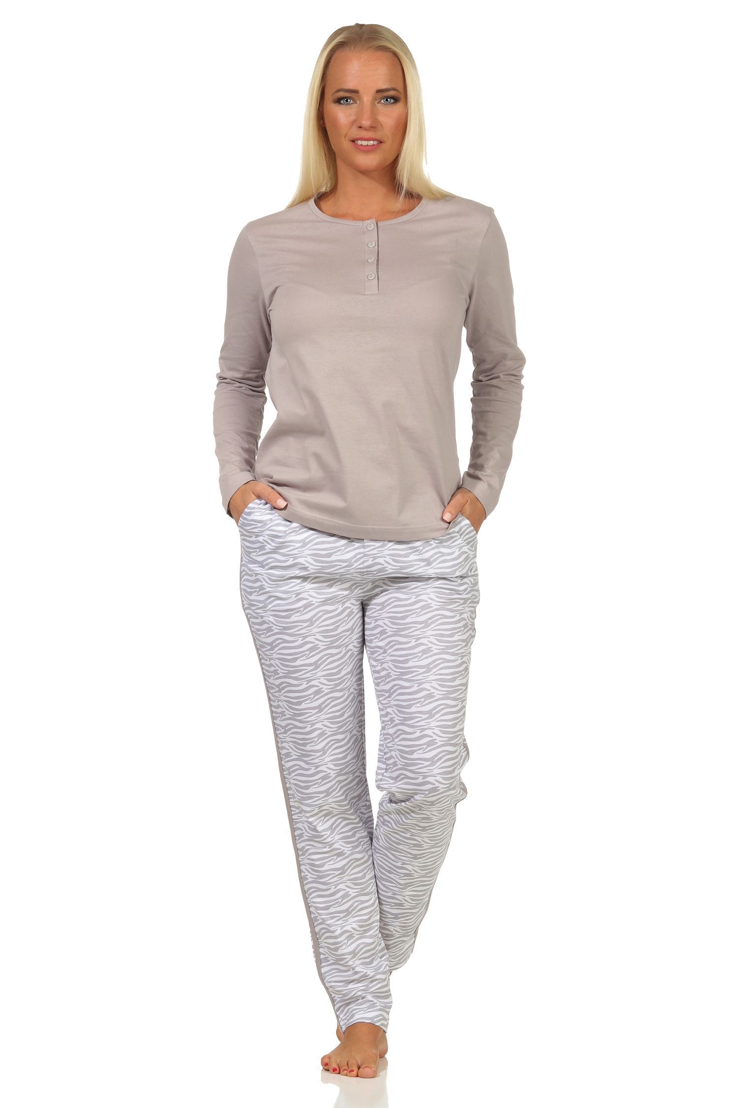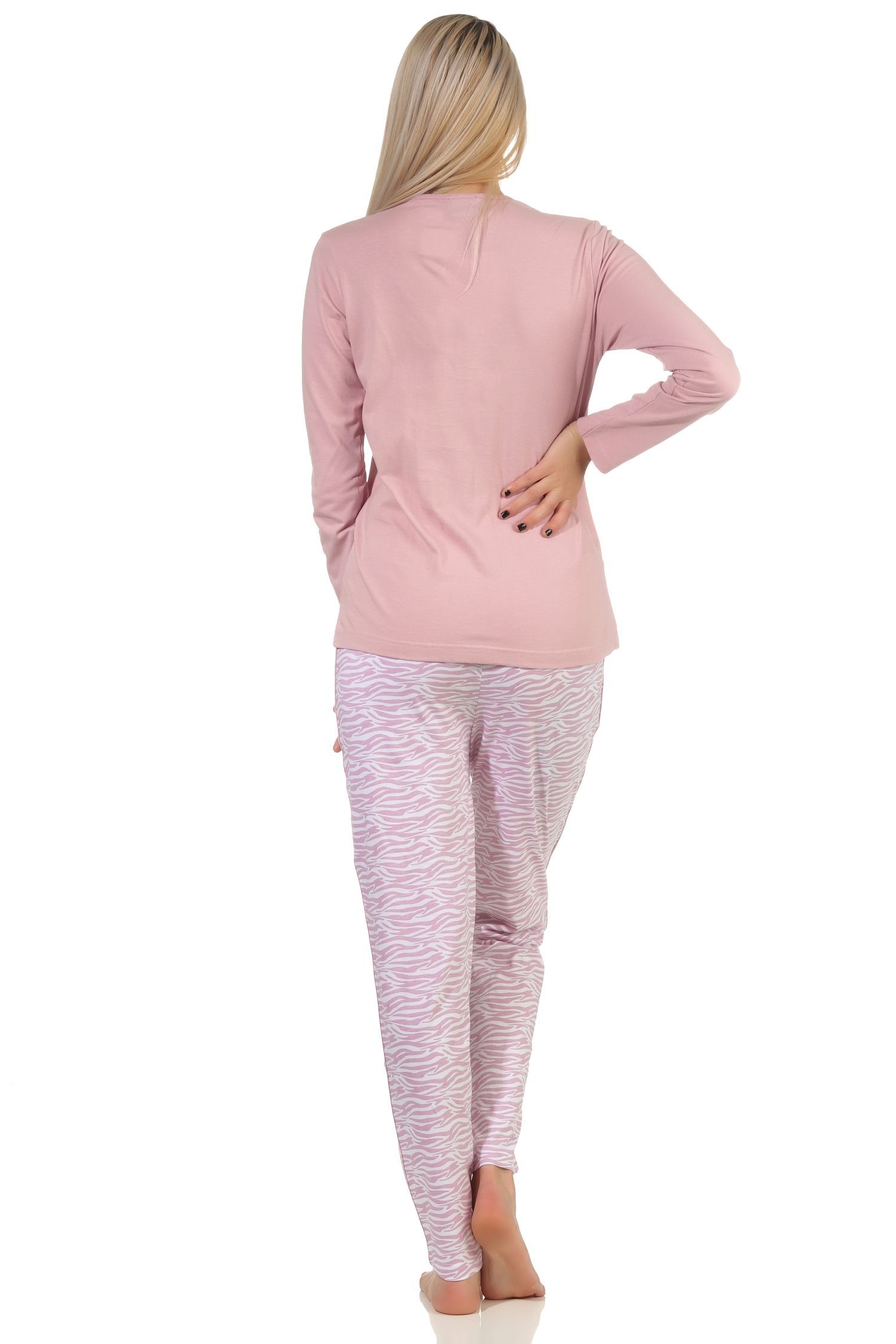 Lässiger Damen Pyjama, Pyjamahose mit seitlichen Streifen am Bein + Animal-Muster