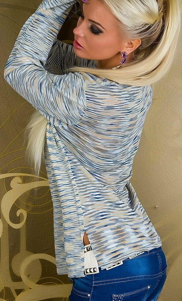 dünner Feinstrick Pullover im streifigen Muster Look lässig geschnittener leichter Rundhals Pulli lässiger gerader Schnitt mit seitlichen Schlitzen am Bund oversize Look elastisches Material Eye Catcher Hot & Sexy In-Style Look _____________________________ Im Artikel steht Französische Größe Ma