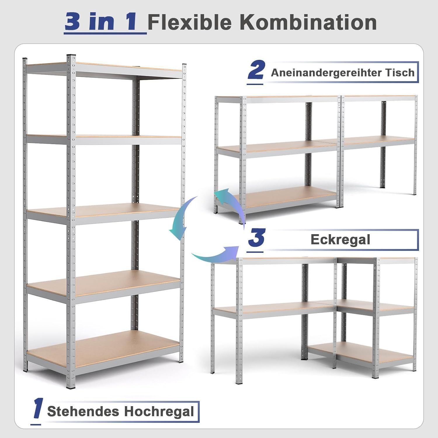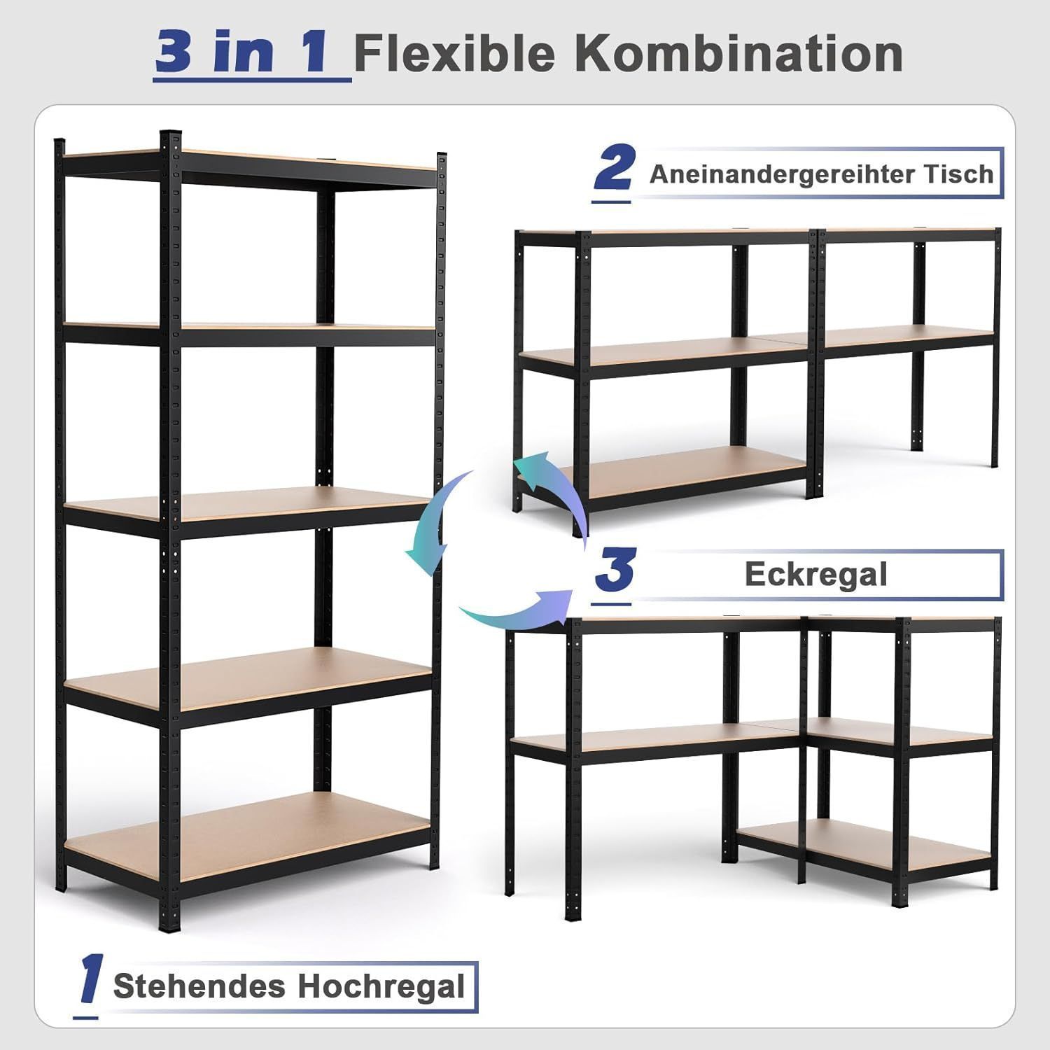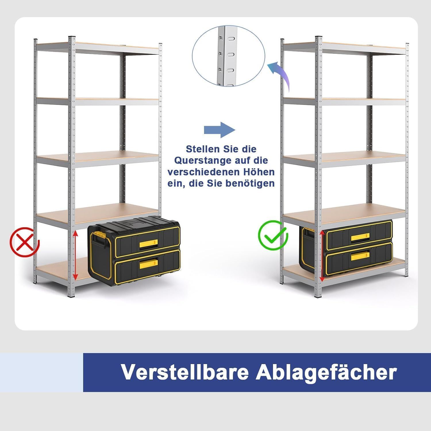 Lagerregal Schwerlastregal, Steckregal Metallregal 5 Ebenen, Werkstattregal