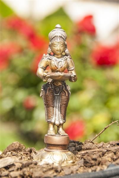 Lakshmi Messing Kupfer/ Silber 14 cm 290 g Buddha Figur Statue Skulptur Glück