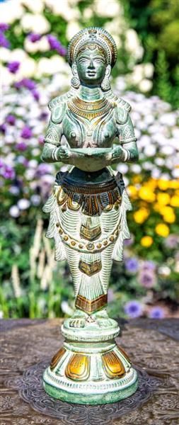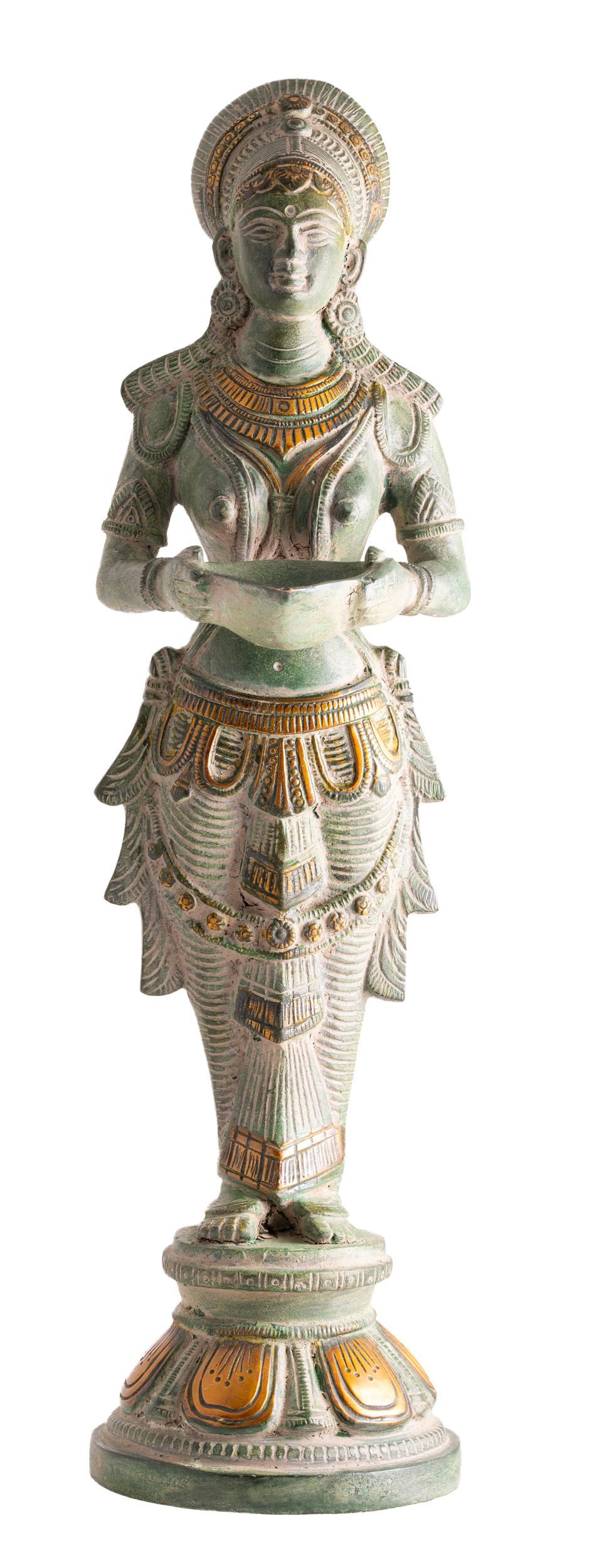 Lakshmi Messing Sandstein grün gold 35,5 cm 2,7 kg Buddhafigur Altarfigur Göttin