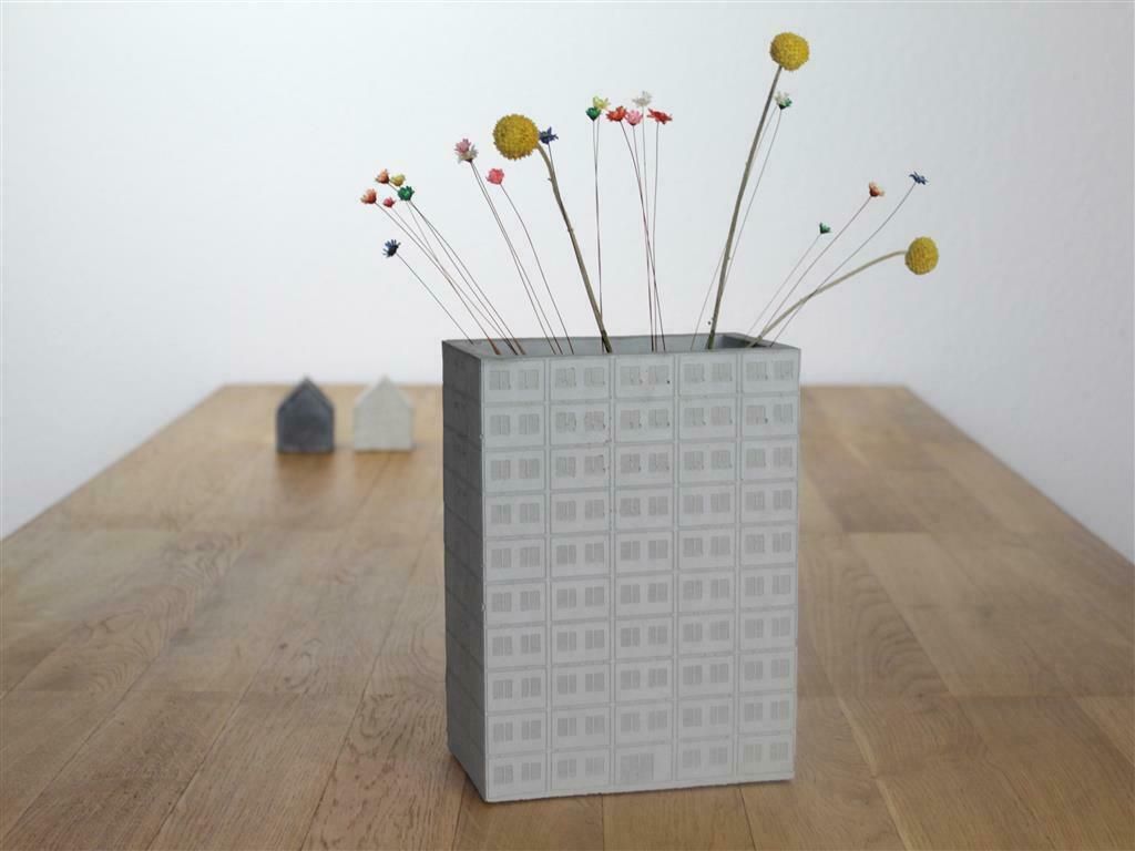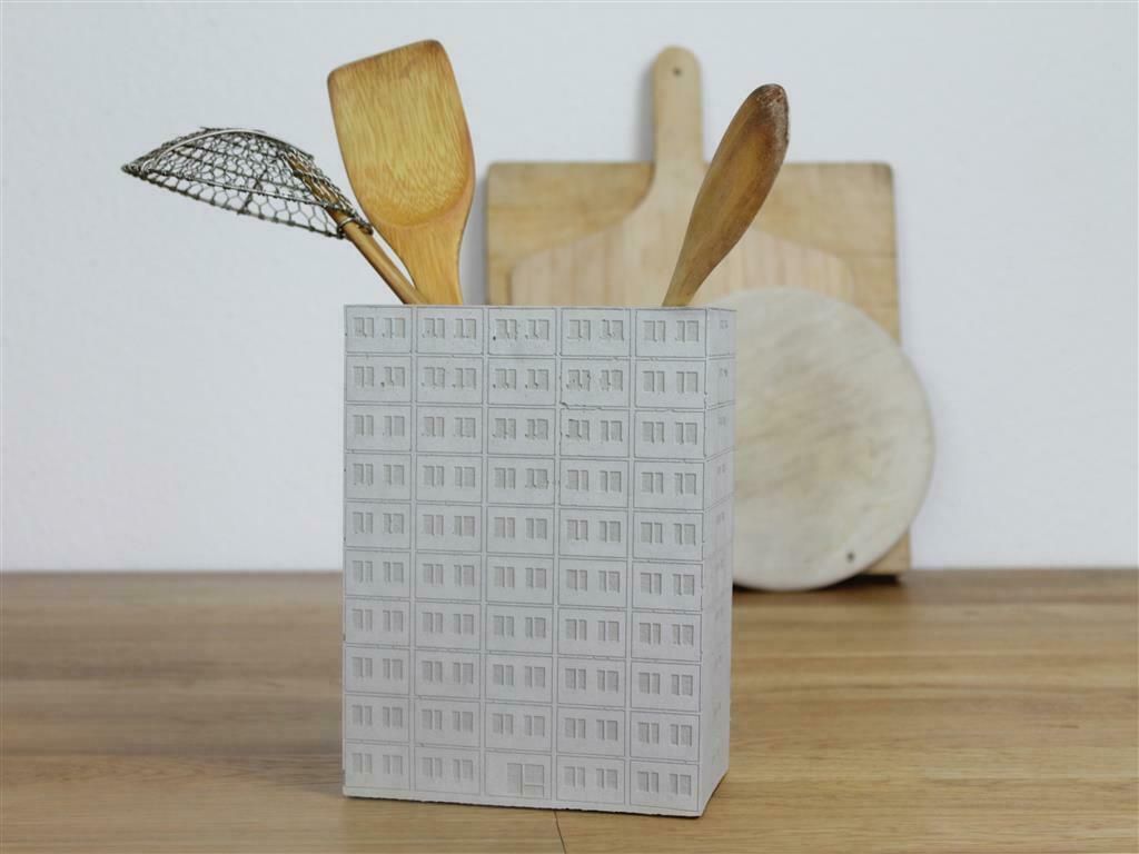 Dieser Vase merkt man ihre urbane Herkunft an, denn sie ist dem Standartplattenbau WBS-70 der DDR nachempfunden. Ein toller Hingucker als Behälter für Kochlöffel oder für den Blumenstrauß oder ganz einfach als minimalistisches Architektur- und Designobjekt. Im Gegensatz zur Einheitsbauweise der echt