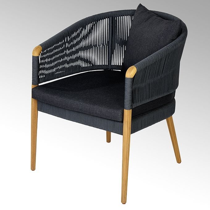 Lambert Lambert Borkum Gartensstuhl "Fish Net Rope" geflochten, schiefer Armlehnen gerade