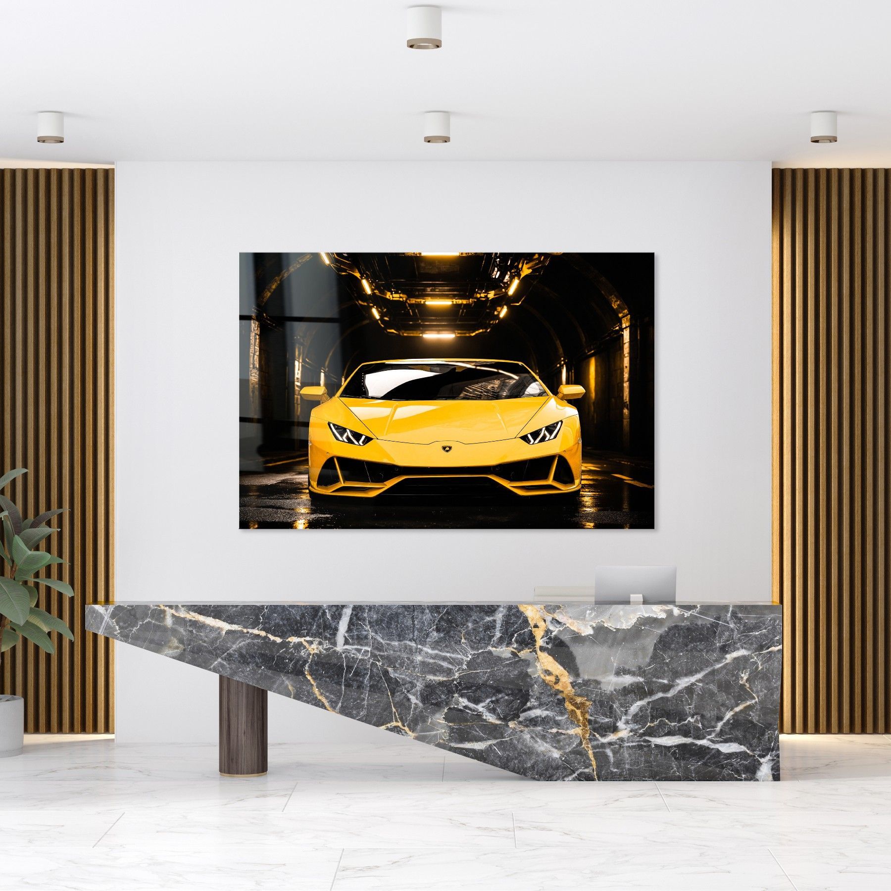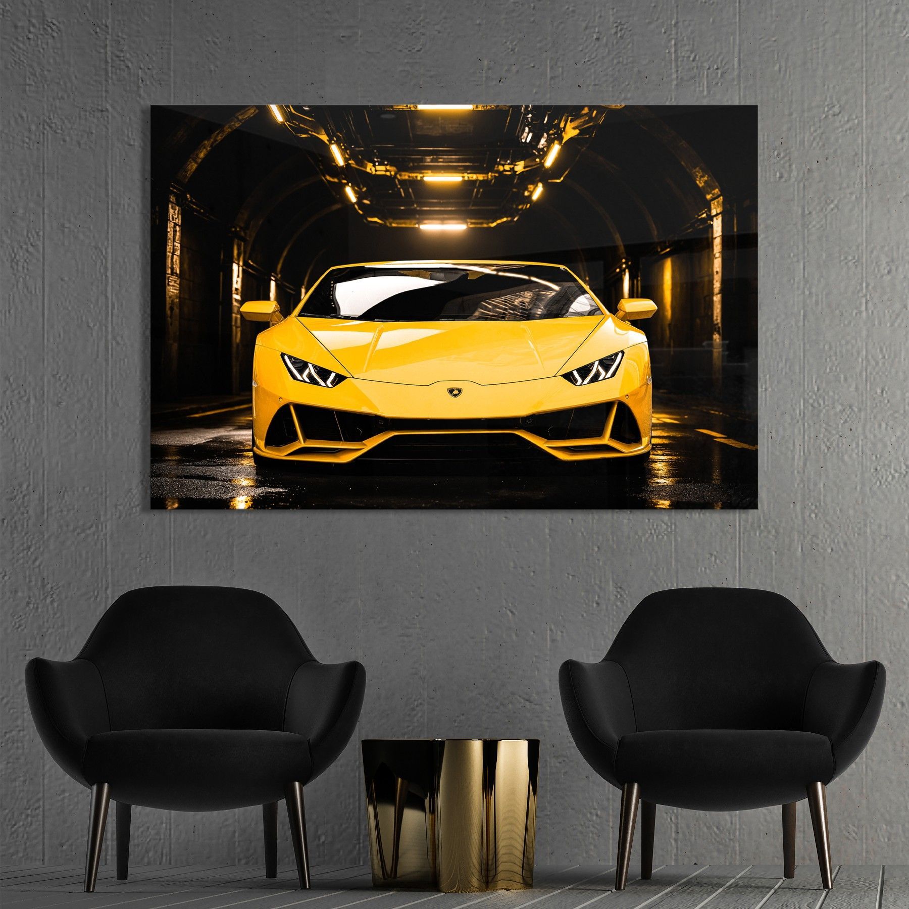 Lamborghini Gold Moderne Wandbild, Sportwagen Auto Kunst Poster, Acrylglas, Leinwand