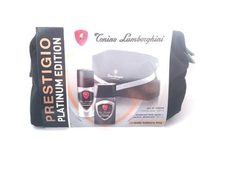 Lamborghini Prestigio Platinum Geschenkset 100ml EdT, 150ml Body Spray, Tasche