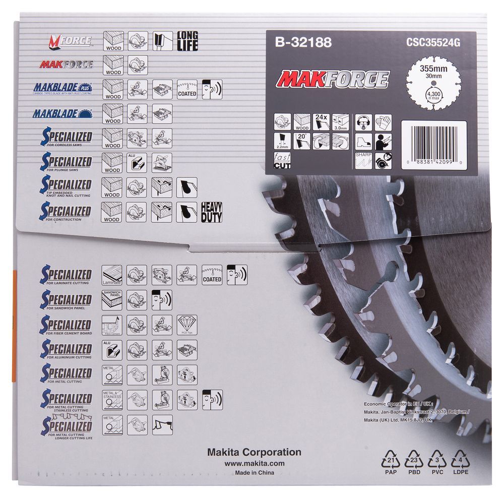 Makita Lame de scie circulaire Makita Makforce 355 x 30 mm - 24 dents - Bois