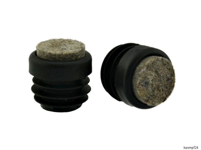 1 x Lamellengleiter Filz Ø 18 mm schwarz Ausführung: Bodengleiter aus robustem Kunststoff, geeignet für Stuhl – Tischbeine aus Metallrohr. Der Gleiter verfügt über eine eingeklebt umspritzte Filz - Gleitfläche . Der Stopfen passt sich durch seine Lamellenstruktur an alle gängigen Rohrwa