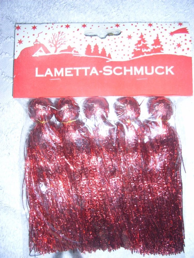 Lametta je 5 Lametta Quasten Aufhänger in rot