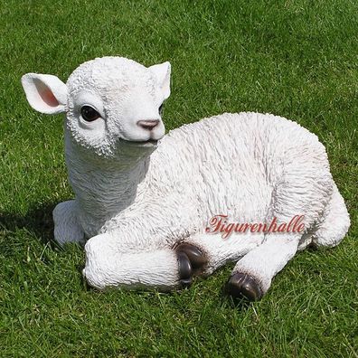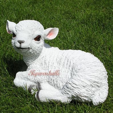 • Lamm Schaf liegend lebensgroß 19cm für draußen aus Polyresin