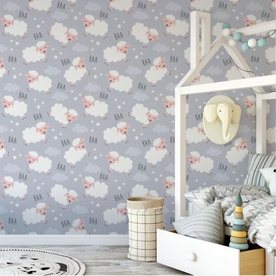 • 10m VLIES TAPETE Rolle Kinderzimmer Tiere Schafe Lämmer Wolken Sterne XXL 3545