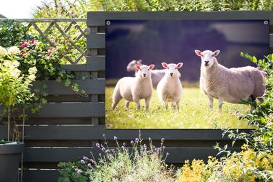 • Gartenposter - 120x80 cm - Schaf - Lamm - Blumen (Gr. 120x80 cm)