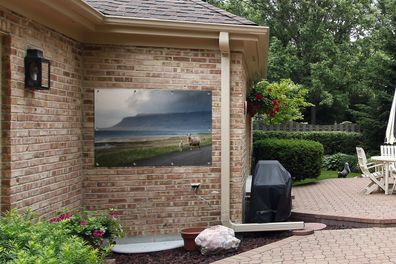 • Gartenposter - 120x80 cm - Schaf - Lamm - Sturm (Gr. 120x80 cm)