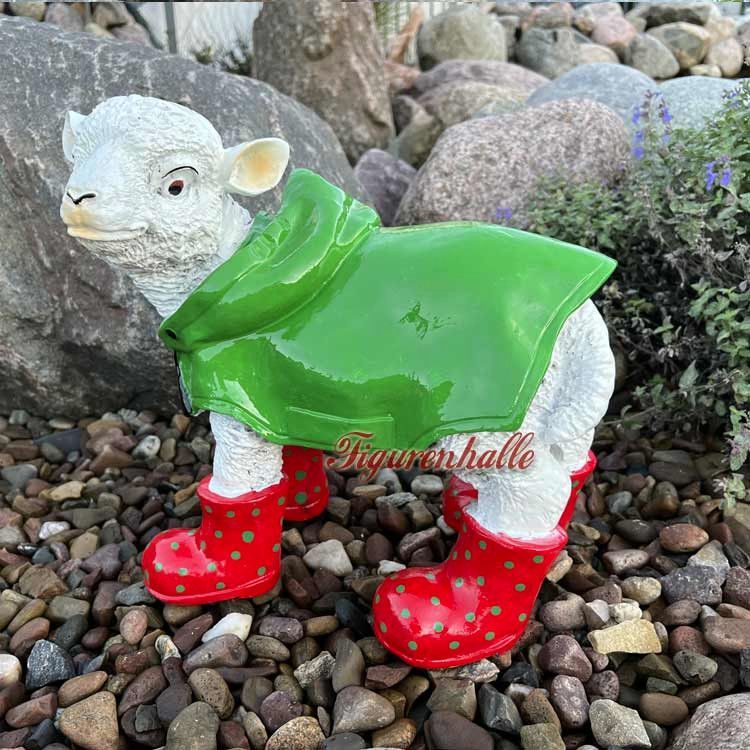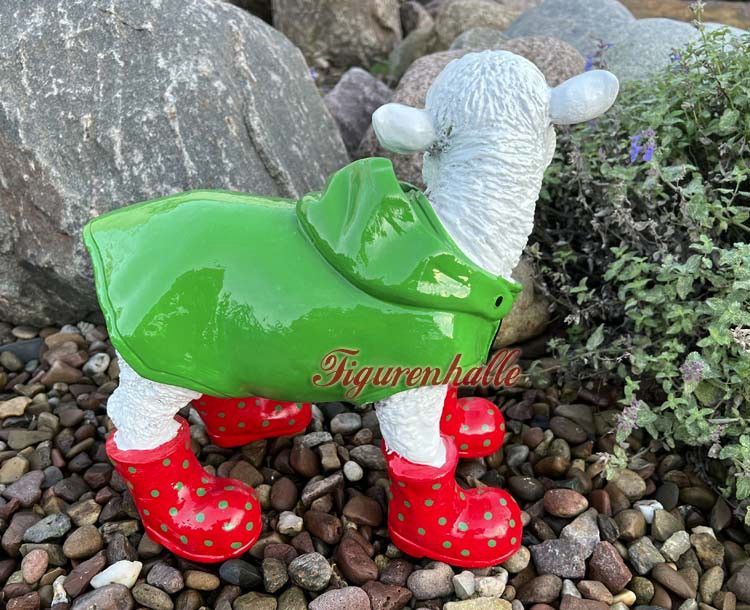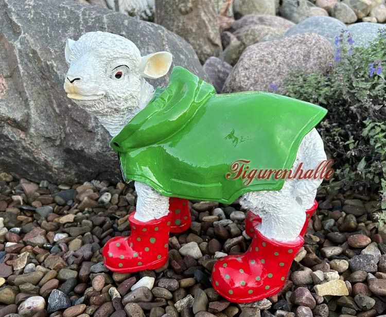 Lamm Schaf Figur Statue Gartenfigur Regenjacke Friesennerz Deko Stiefel Jacke