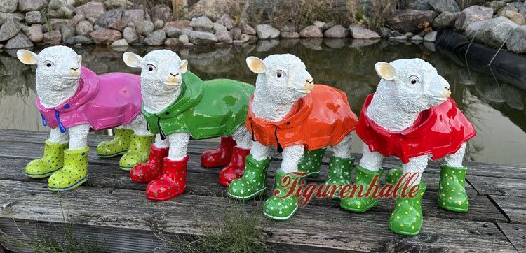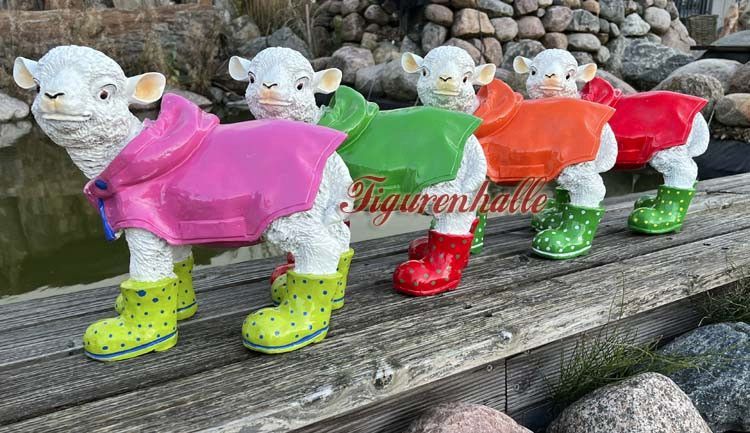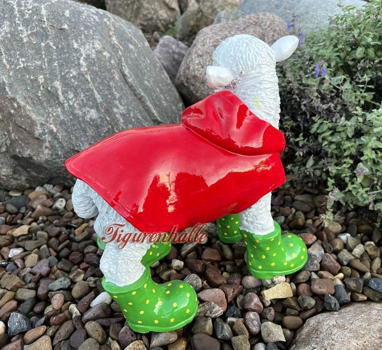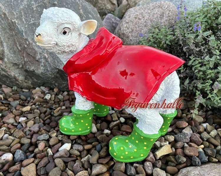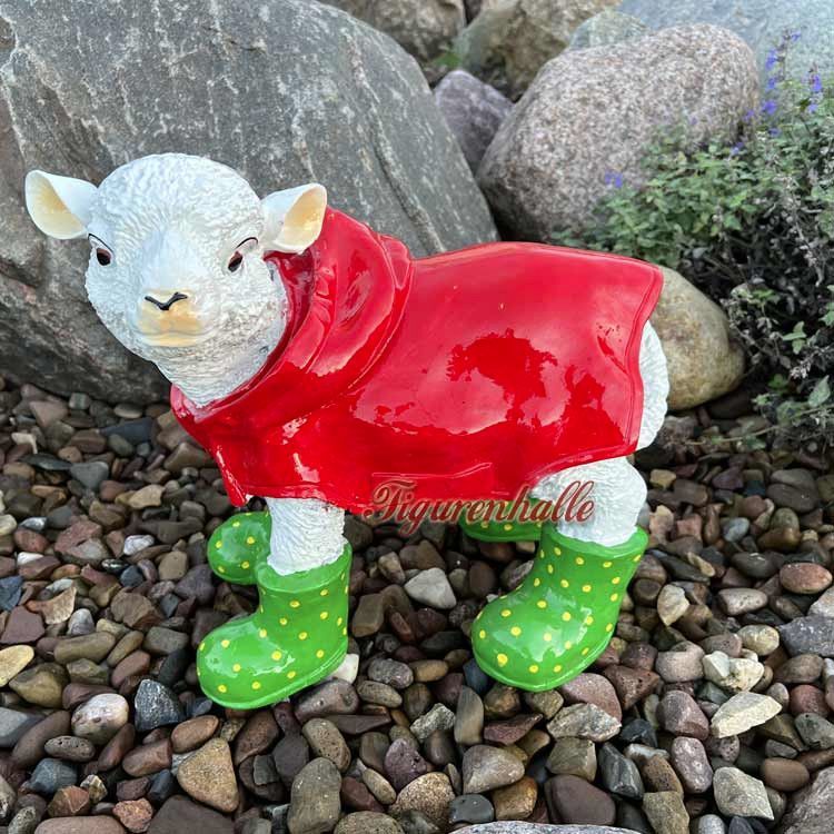 Lamm Schaf Figur Statue Gartenfigur Regenmantel Friesennerz Deko Gummistiefel kl