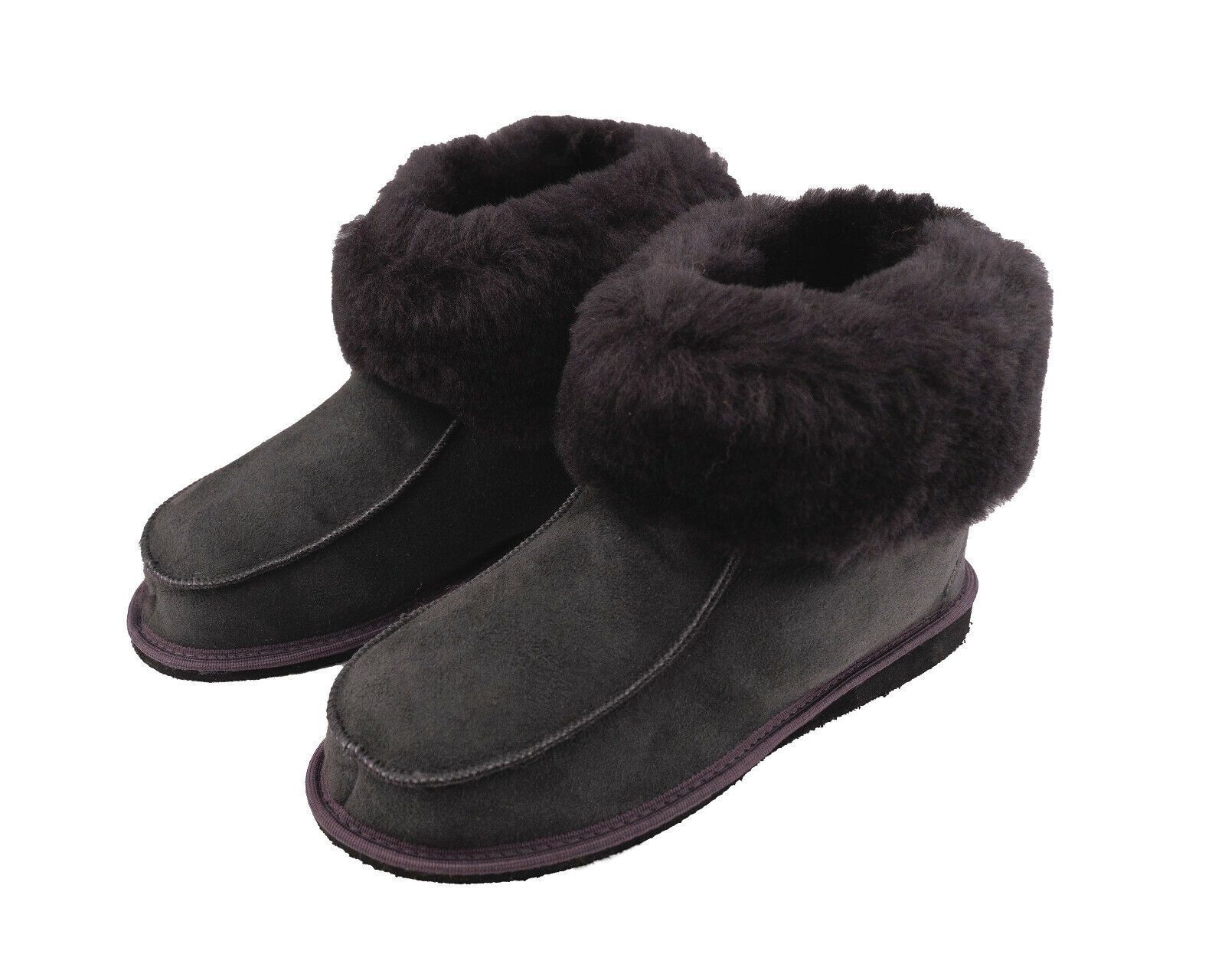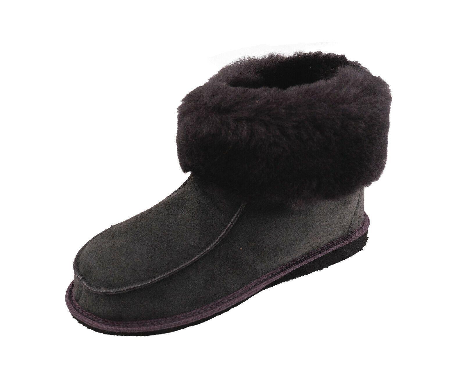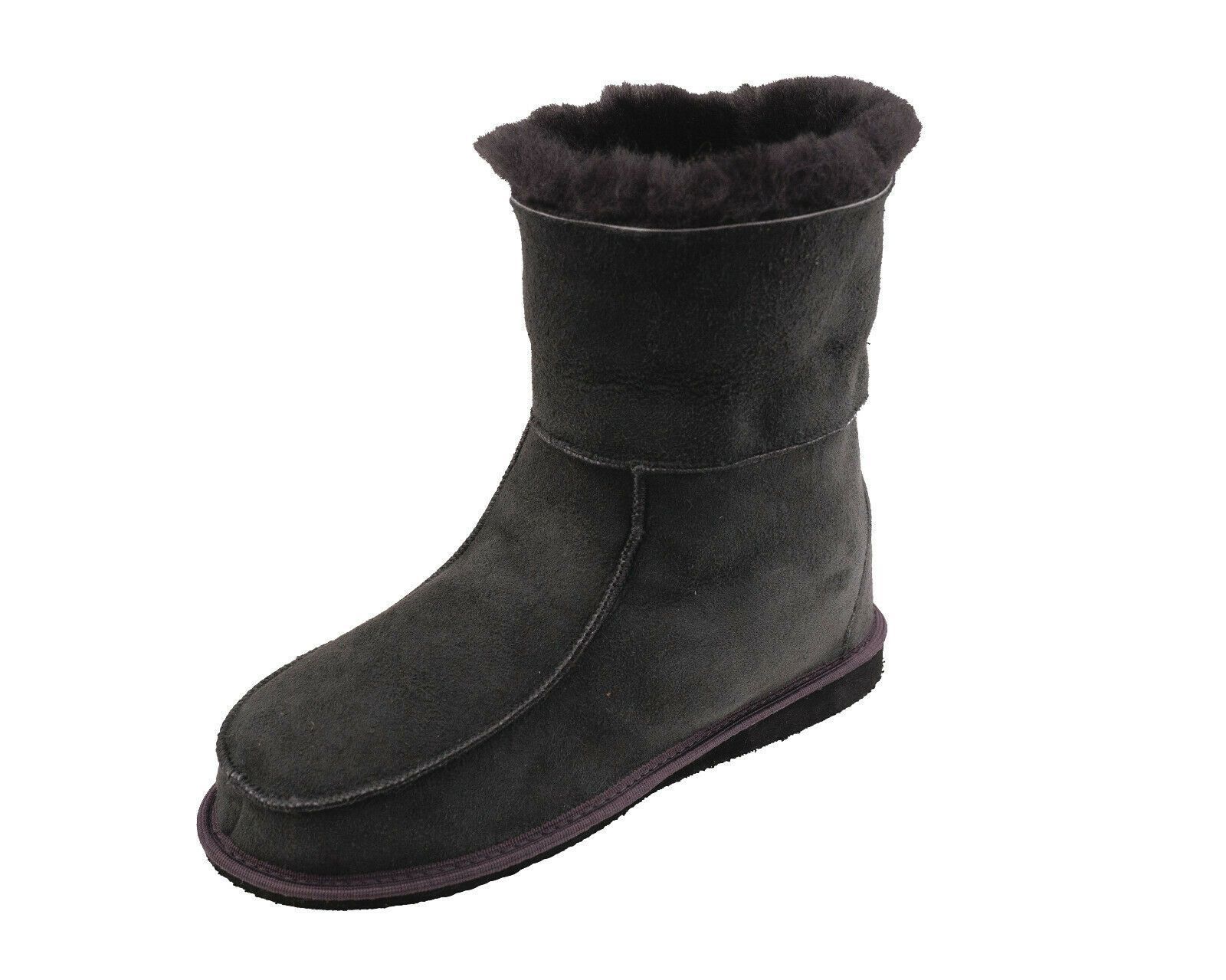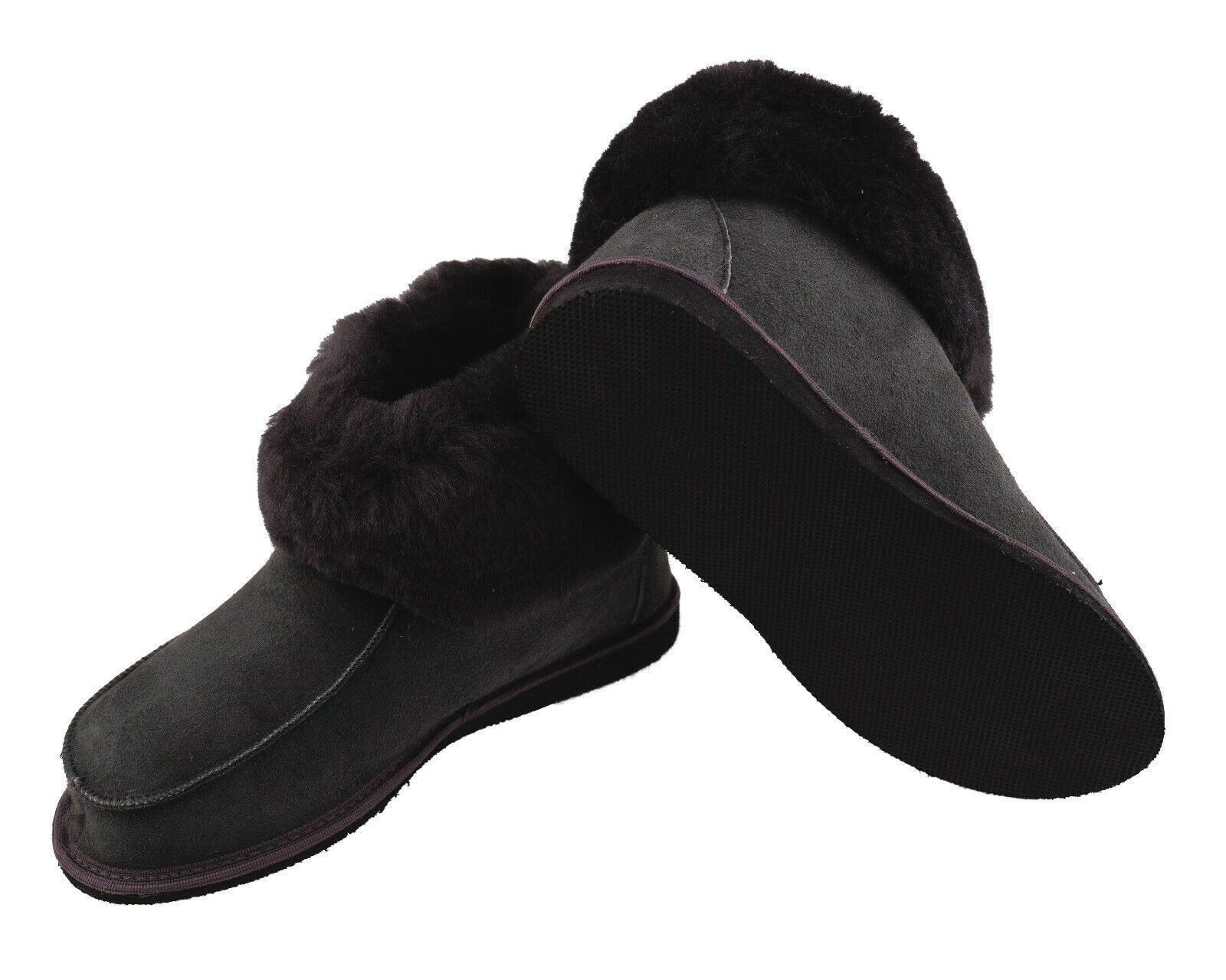 Lammfell Leder Hüttenschuhe Mokassin Hausschuhe Pantoffeln Fell graphit Gr.36-47