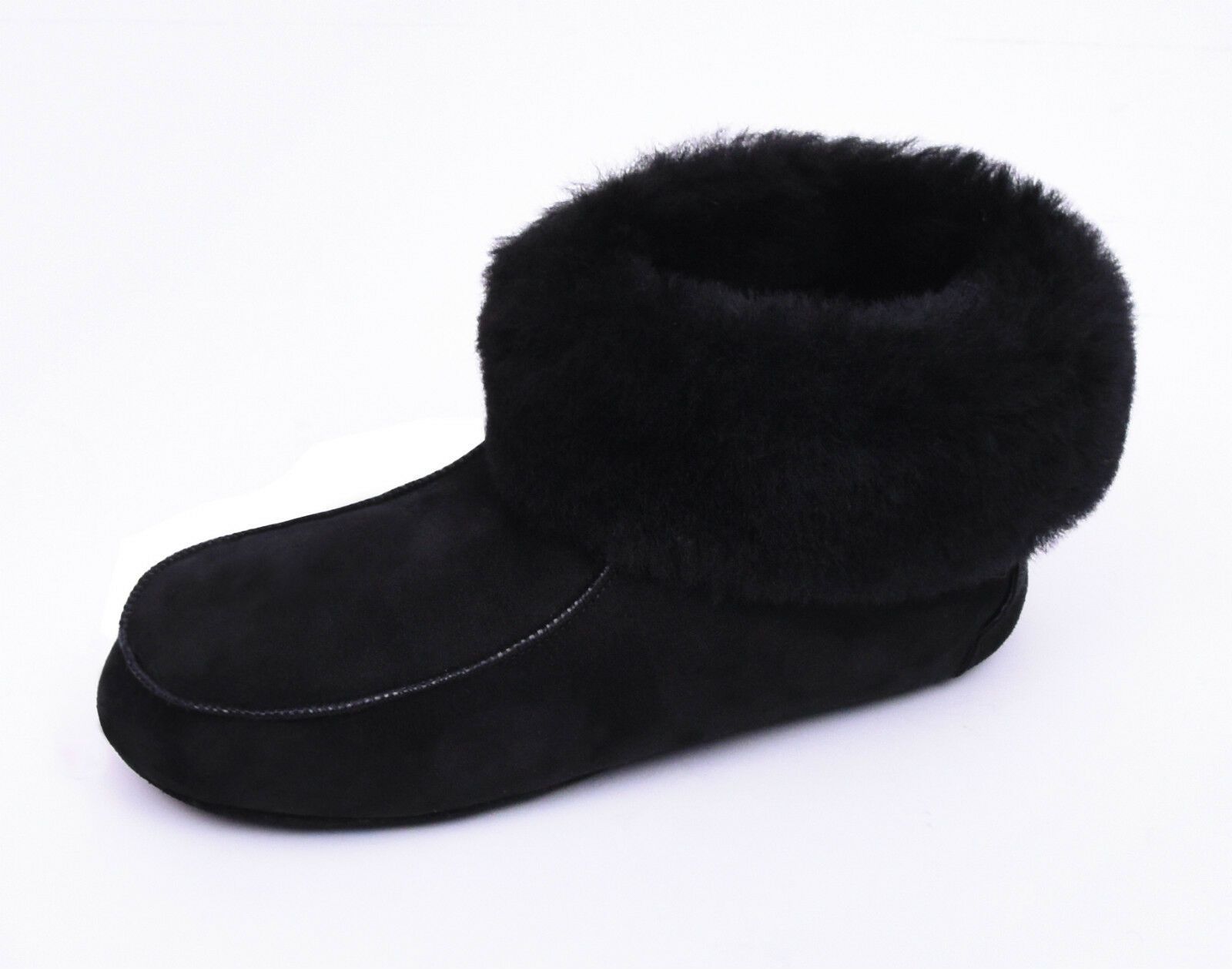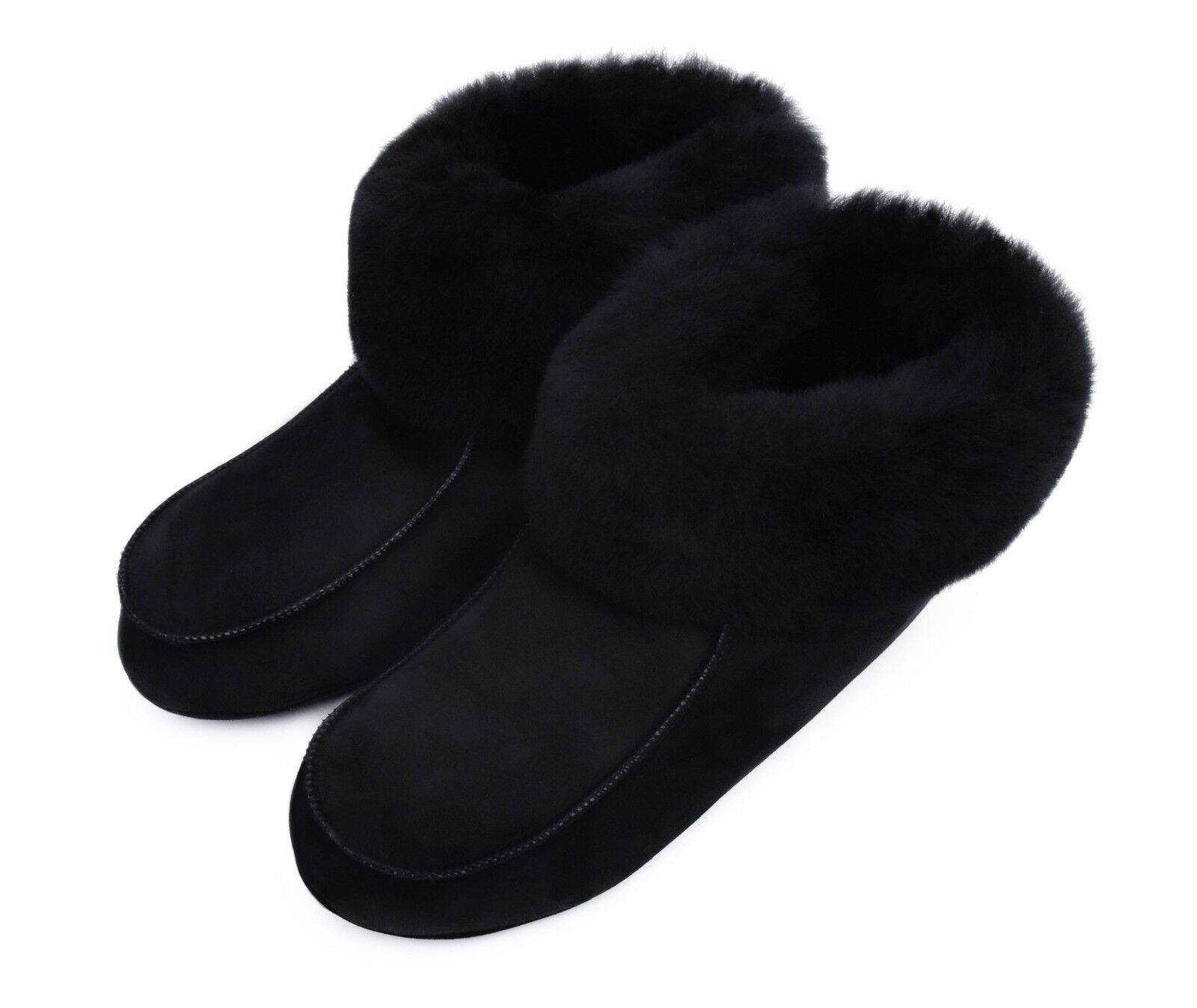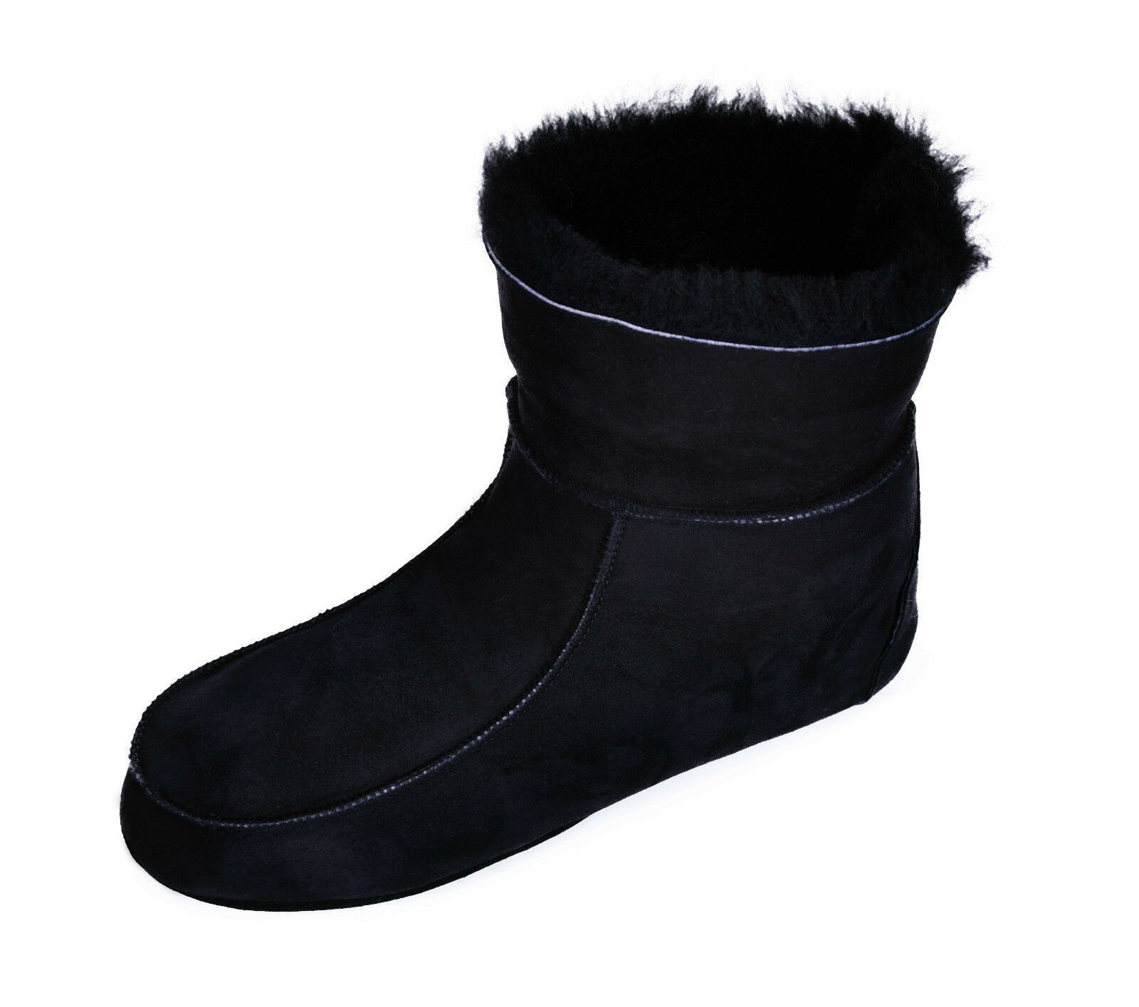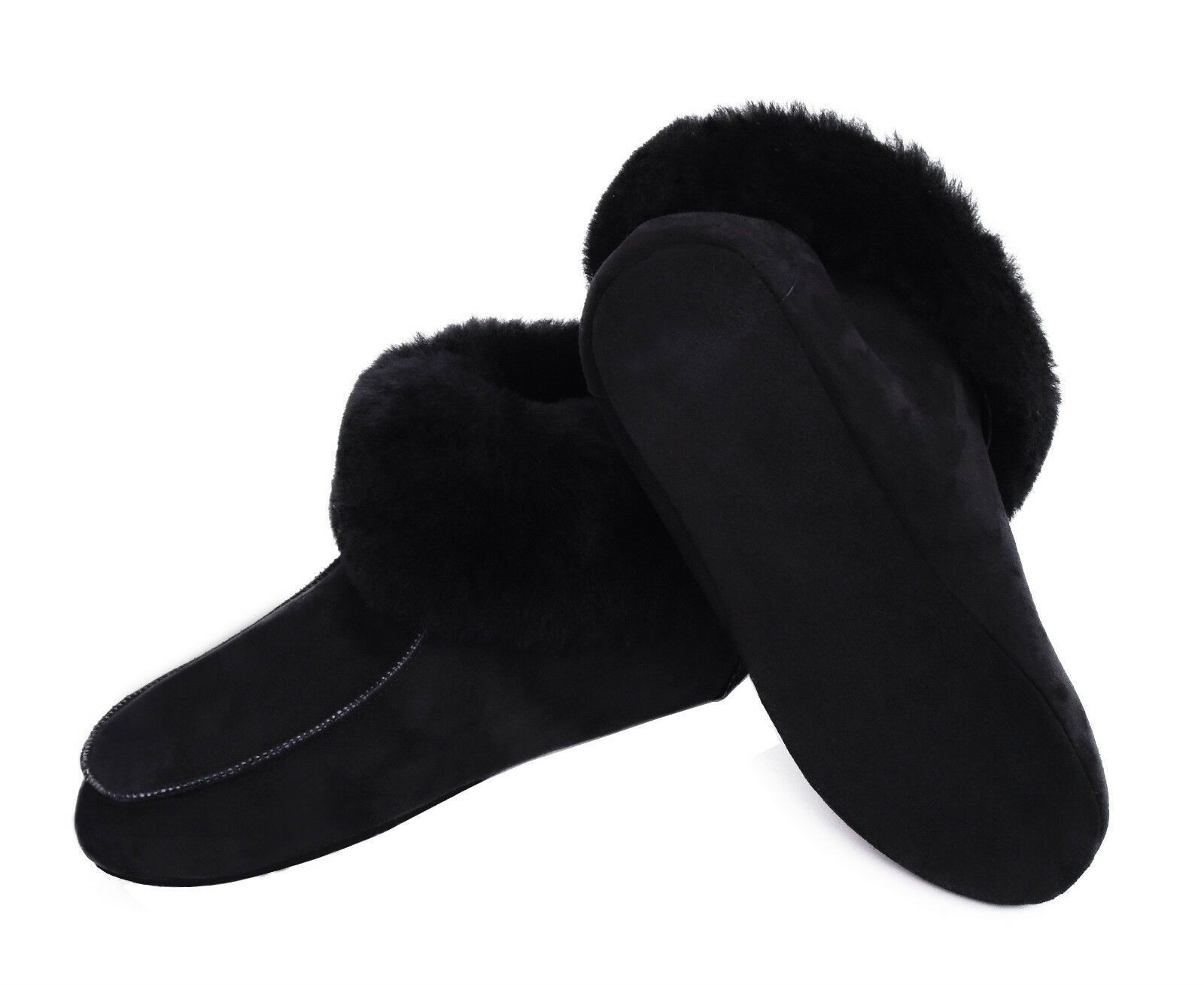 Lammfell Leder Hüttenschuhe Mokassin Hausschuhe Pantoffeln Fell Schwarz Gr.36-47
