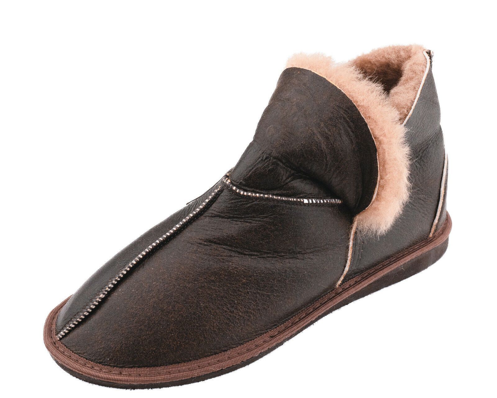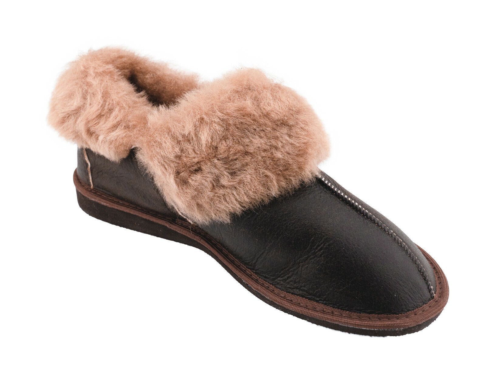 Lammfell Leder Mokassin Hausschuhe Lederhausschuhe Hüttenschuhe Fellschuhe braun