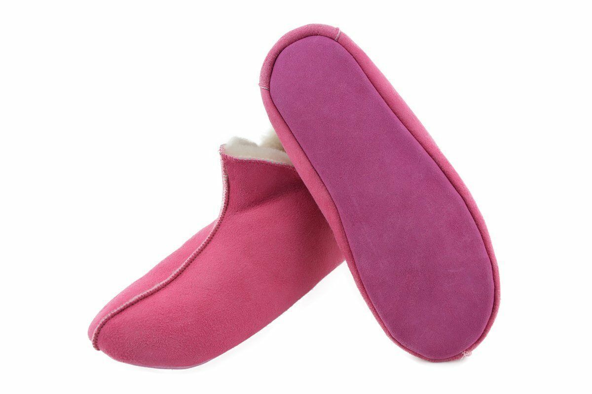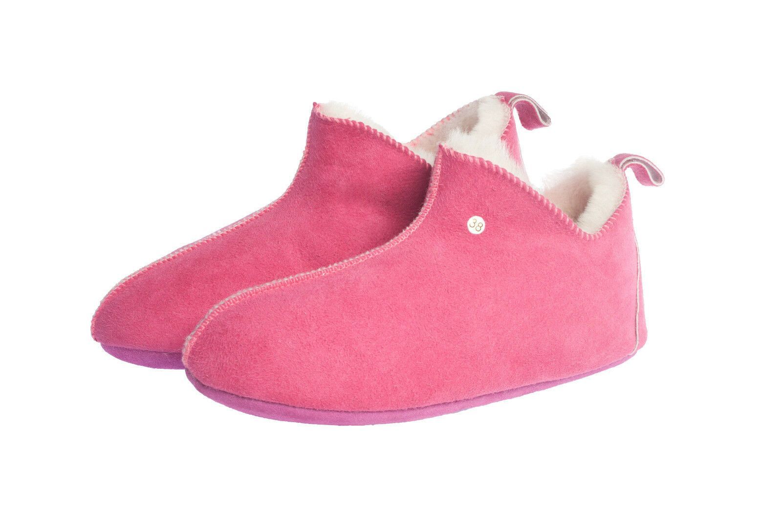Lammfell Leder Mokassin Hausschuhe Pantoffeln Hüttenschuhe Slipper Pink Gr.36-42