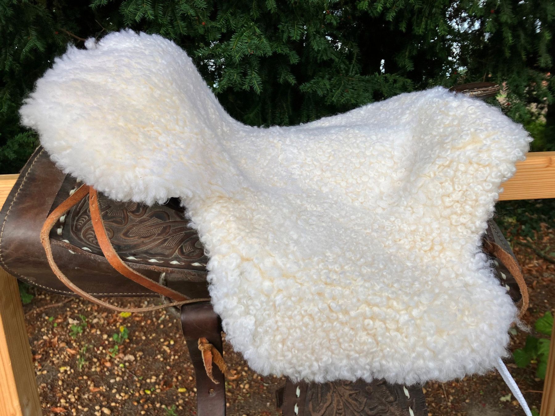 Lammfell Sattelbezug Sattelauflage Lammfellbezug Western Sattelpad Weiß Gelockt