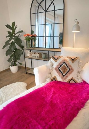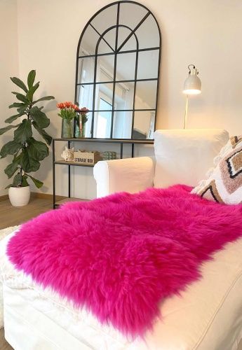 Lammfell Sesselauflage 160 x 50 cm Pink