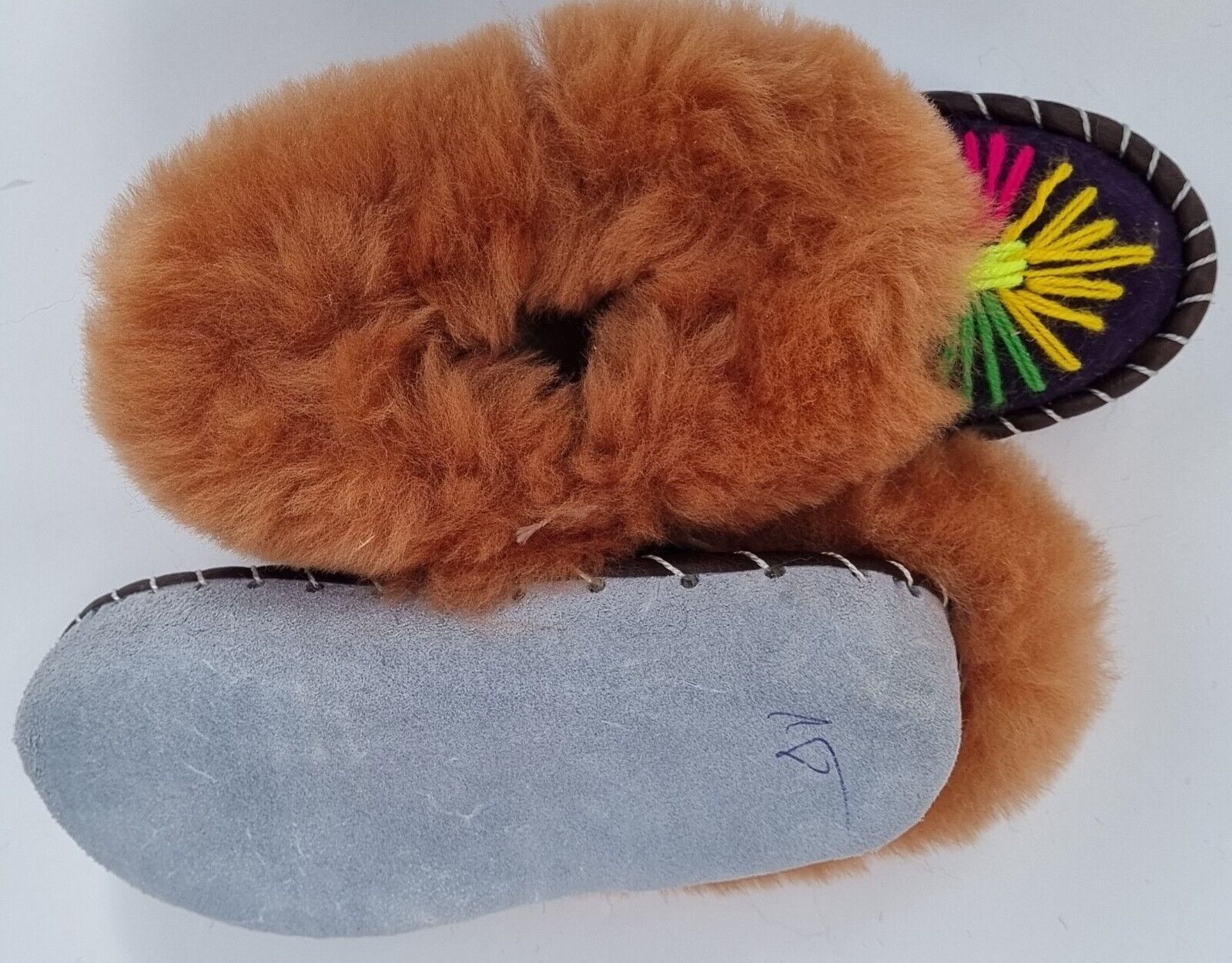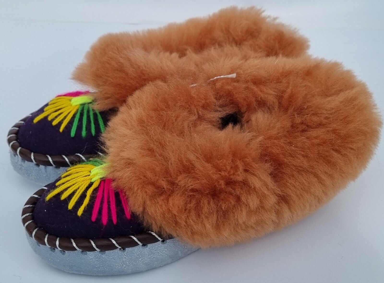 Lammfell Warme Hausschuhe Gr.27/28 NEU, Schaffell / Leder Handarbeit Bestickt ac