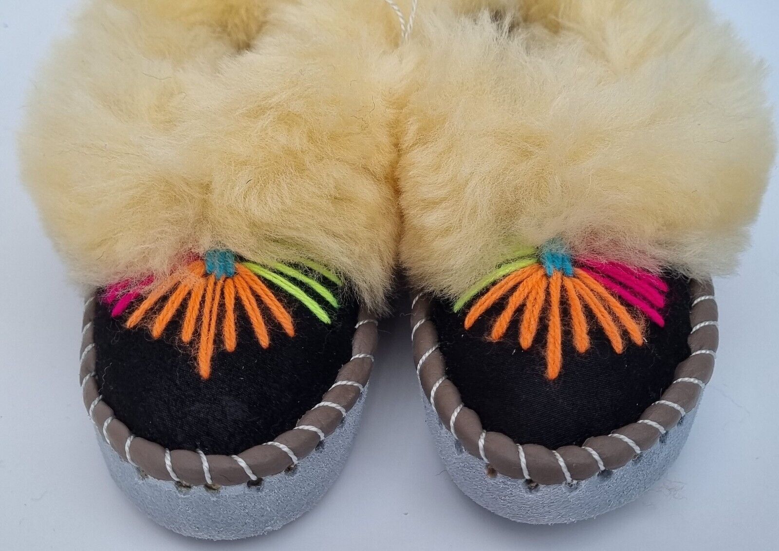 Lammfell Warme Hausschuhe Gr.27/28 NEU, Schaffell / Leder Handarbeit Bestickt rt