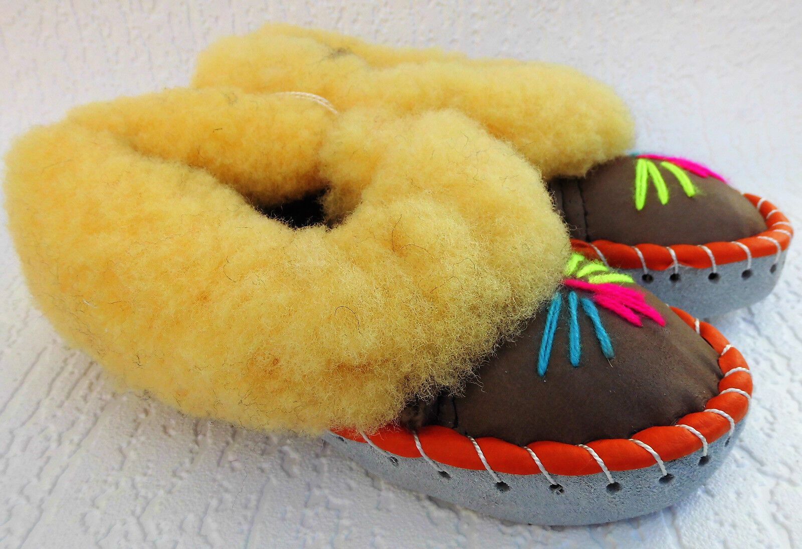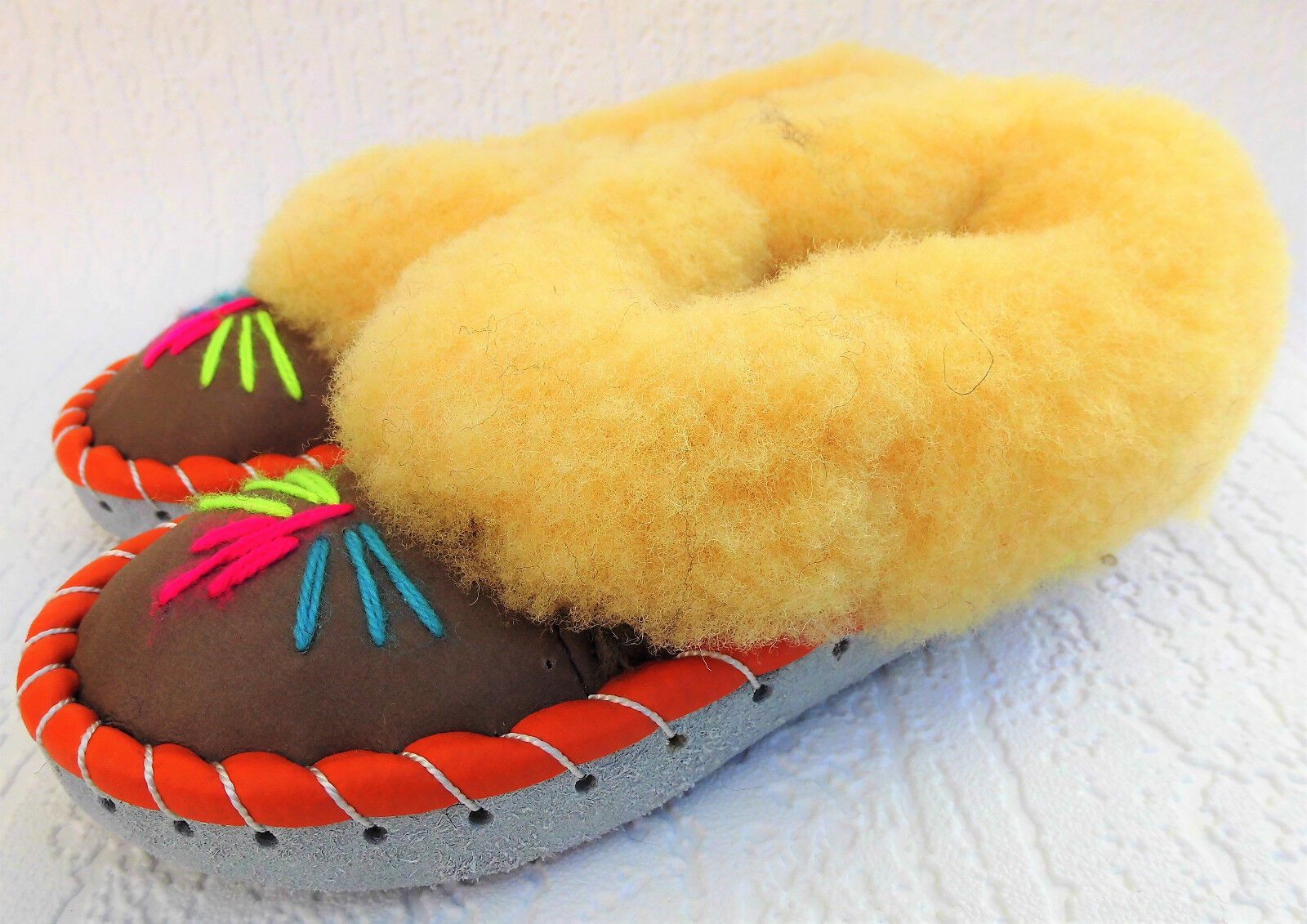 Lammfell Warme Hausschuhe Gr.30 NEU, Schaffell/ leder (Made in Pol.26.19.279)