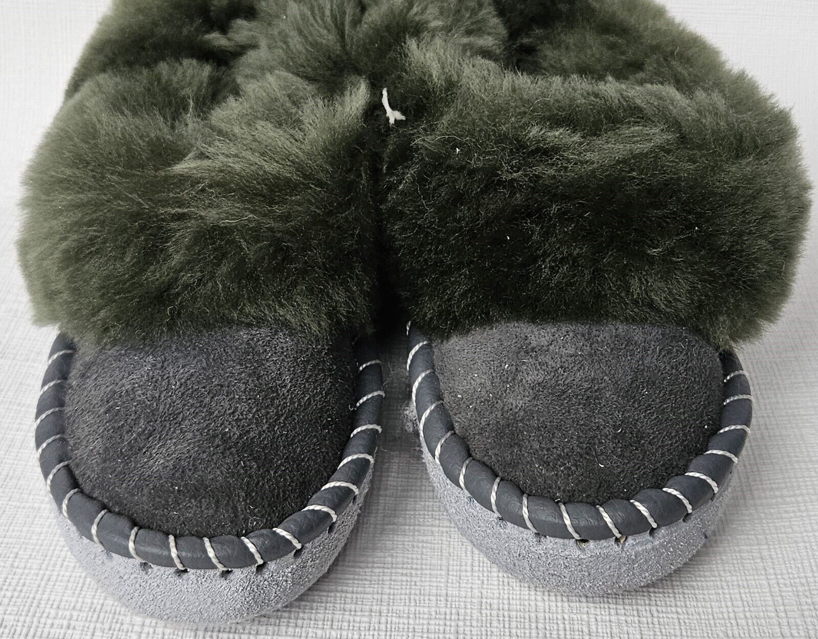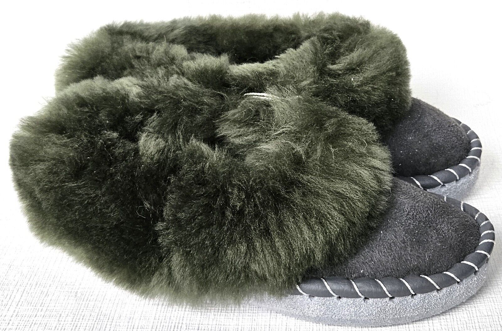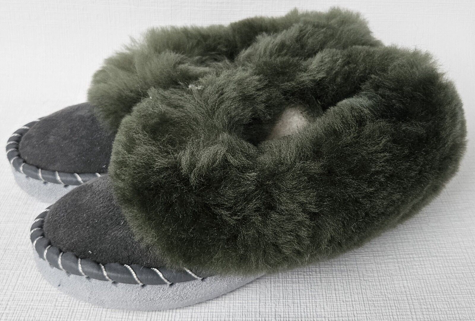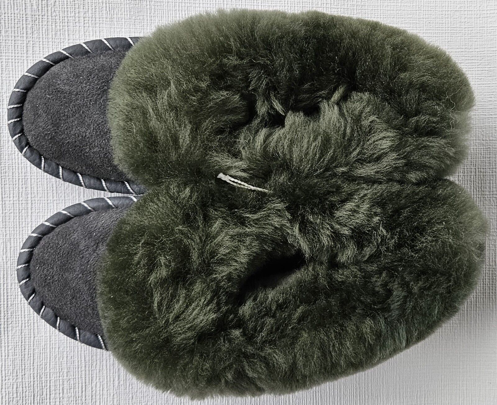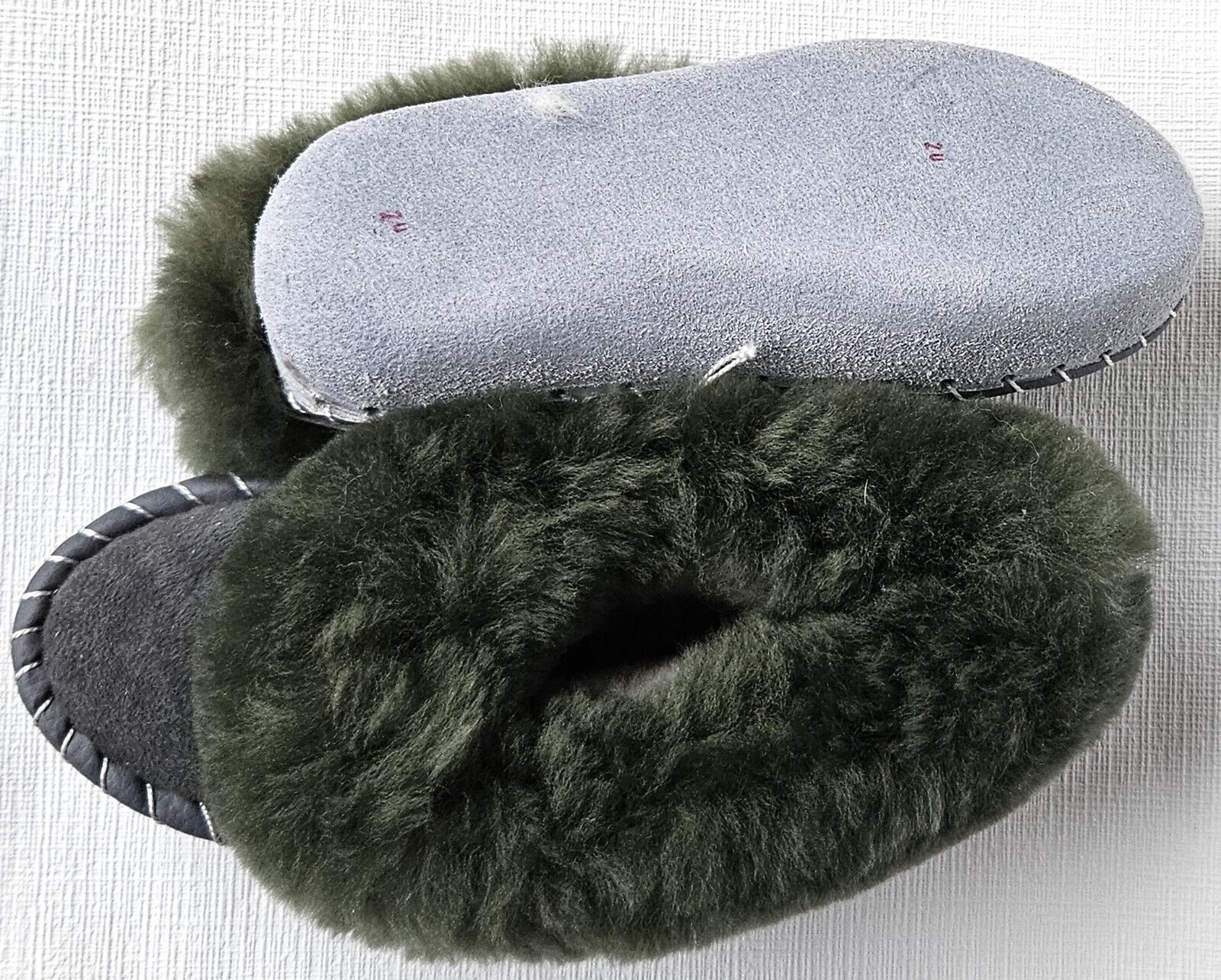 Lammfell Warme Hausschuhe Gr.31 NEU Schaffell/ leder Handarbeit GrünGrau (10g.23