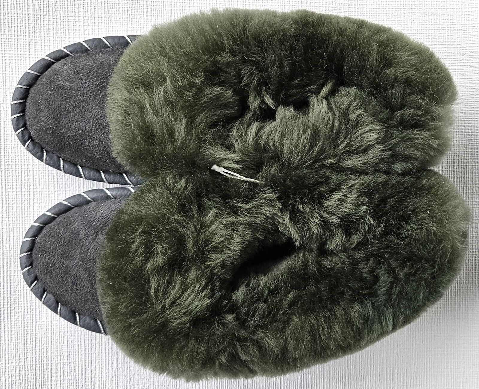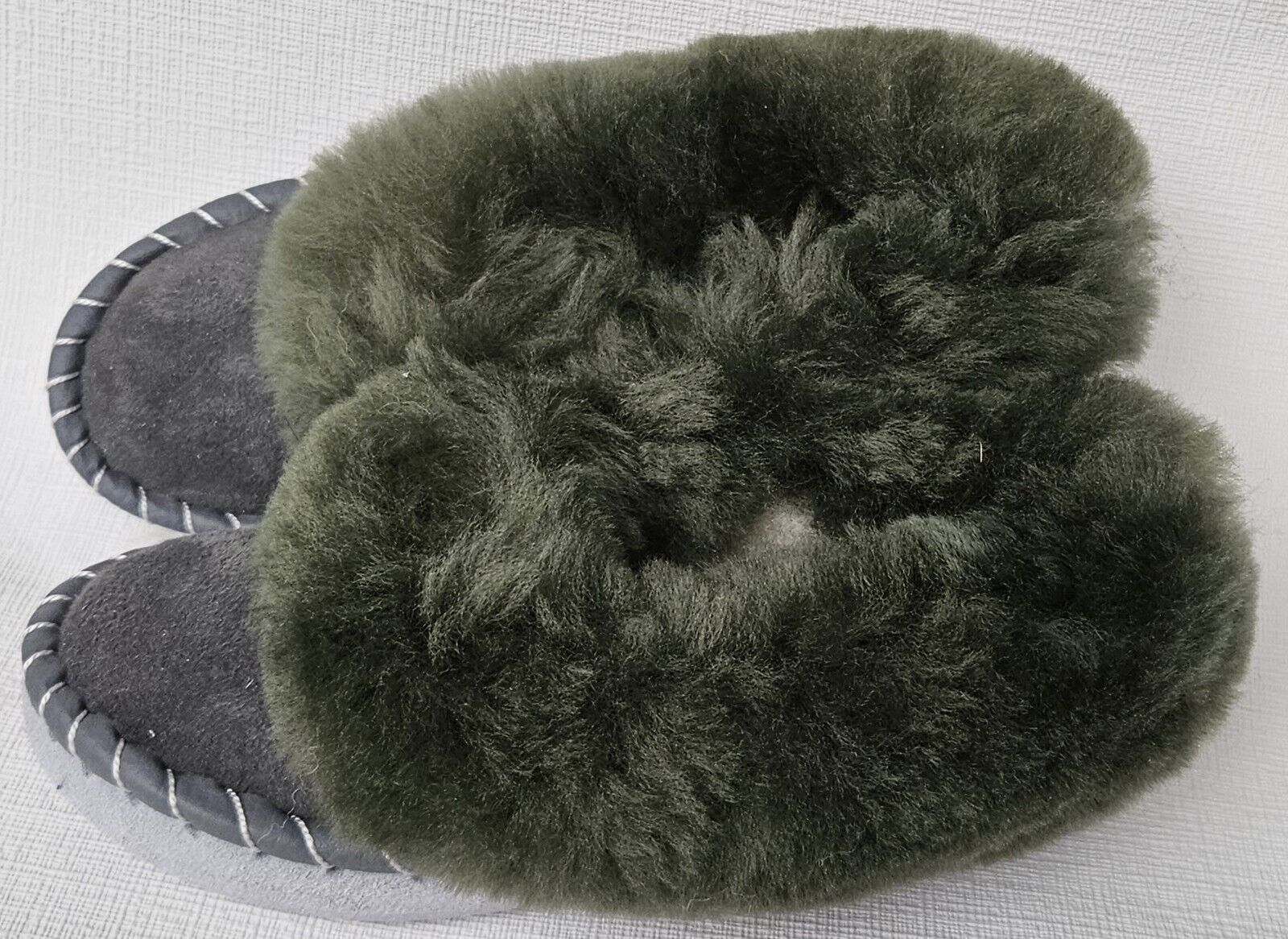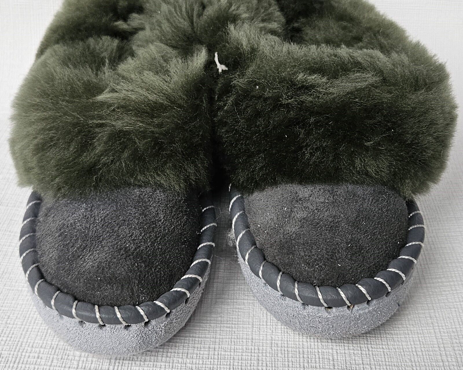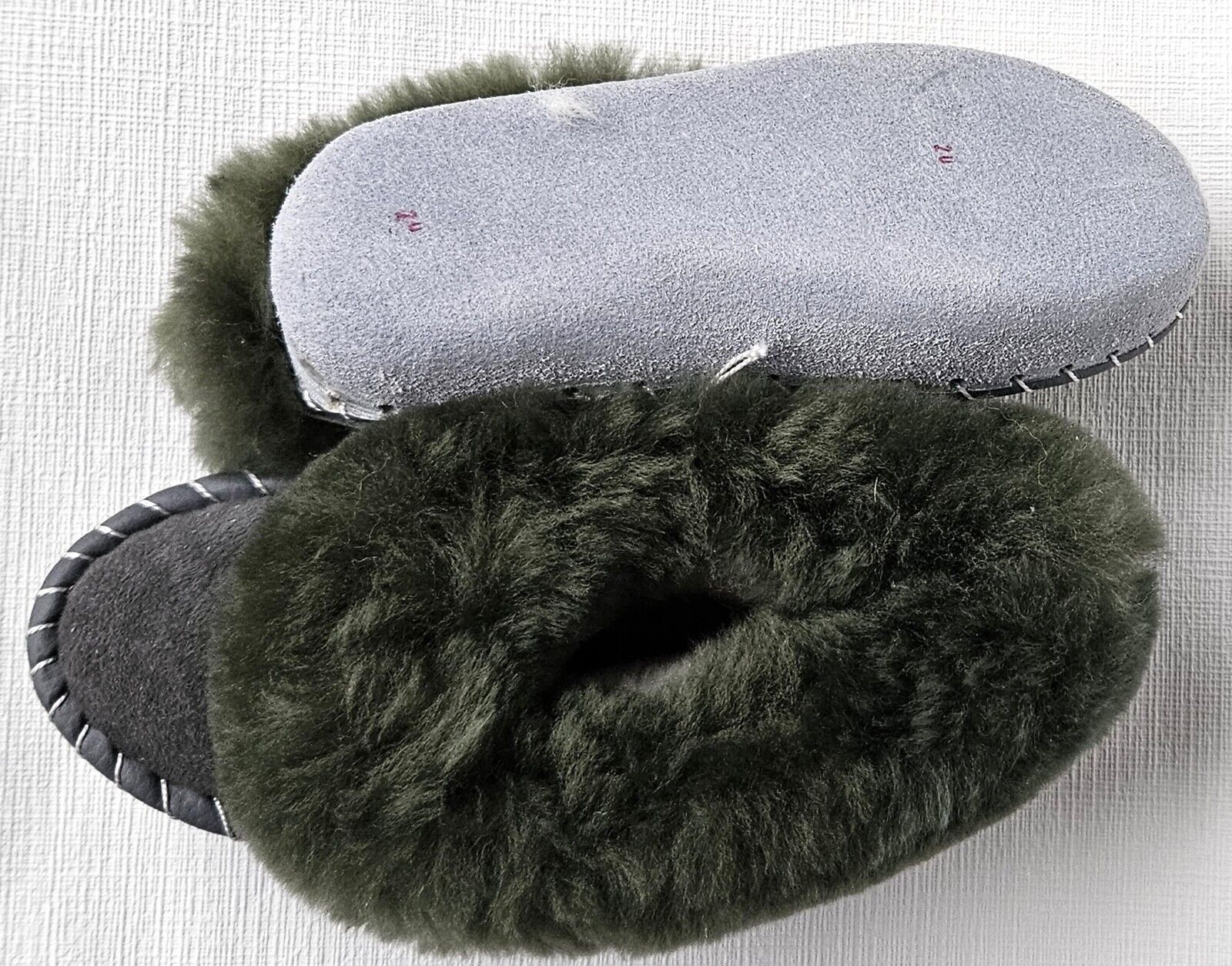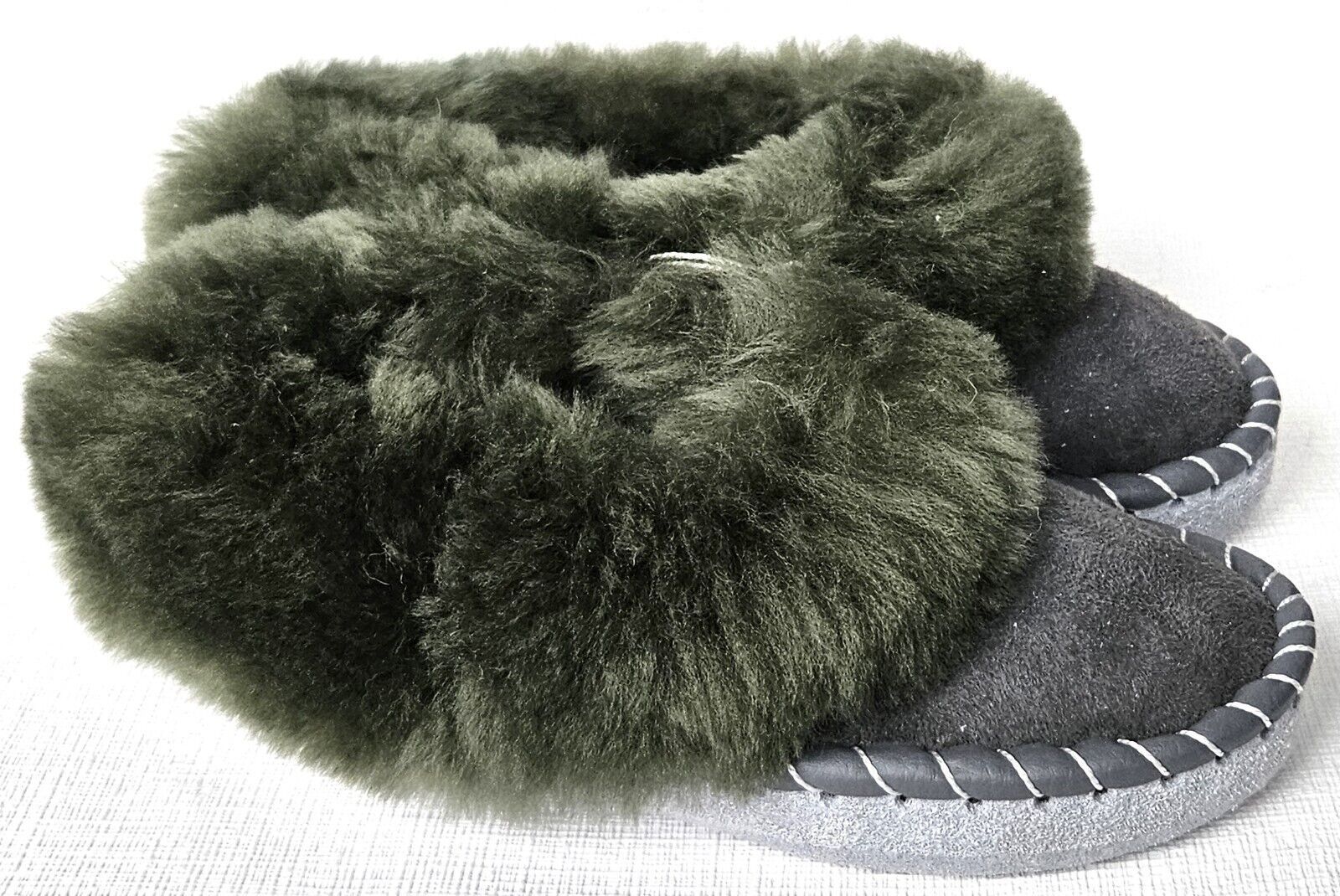 Lammfell Warme Hausschuhe Gr.31 NEU Schaffell/ leder Handarbeit GrünGrau (10g.23