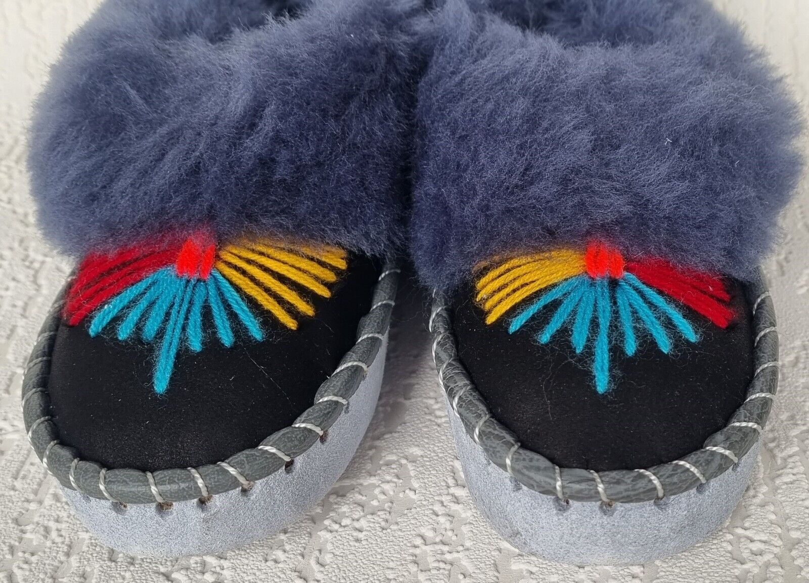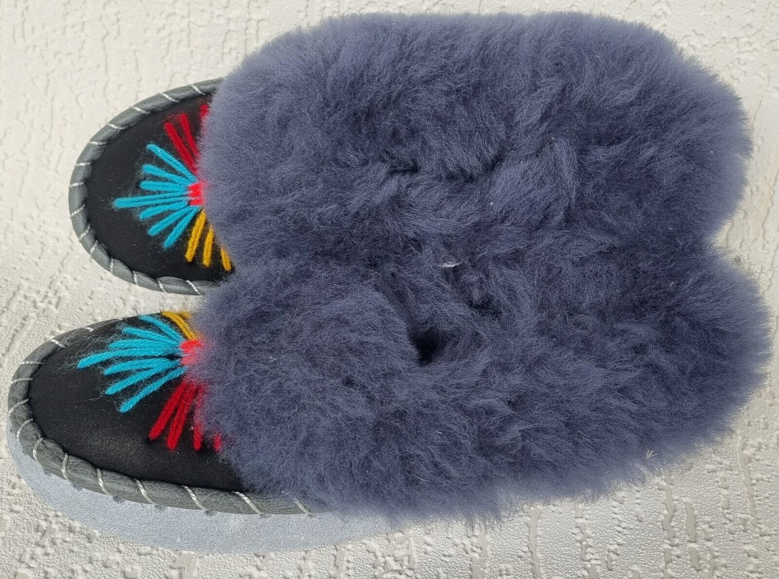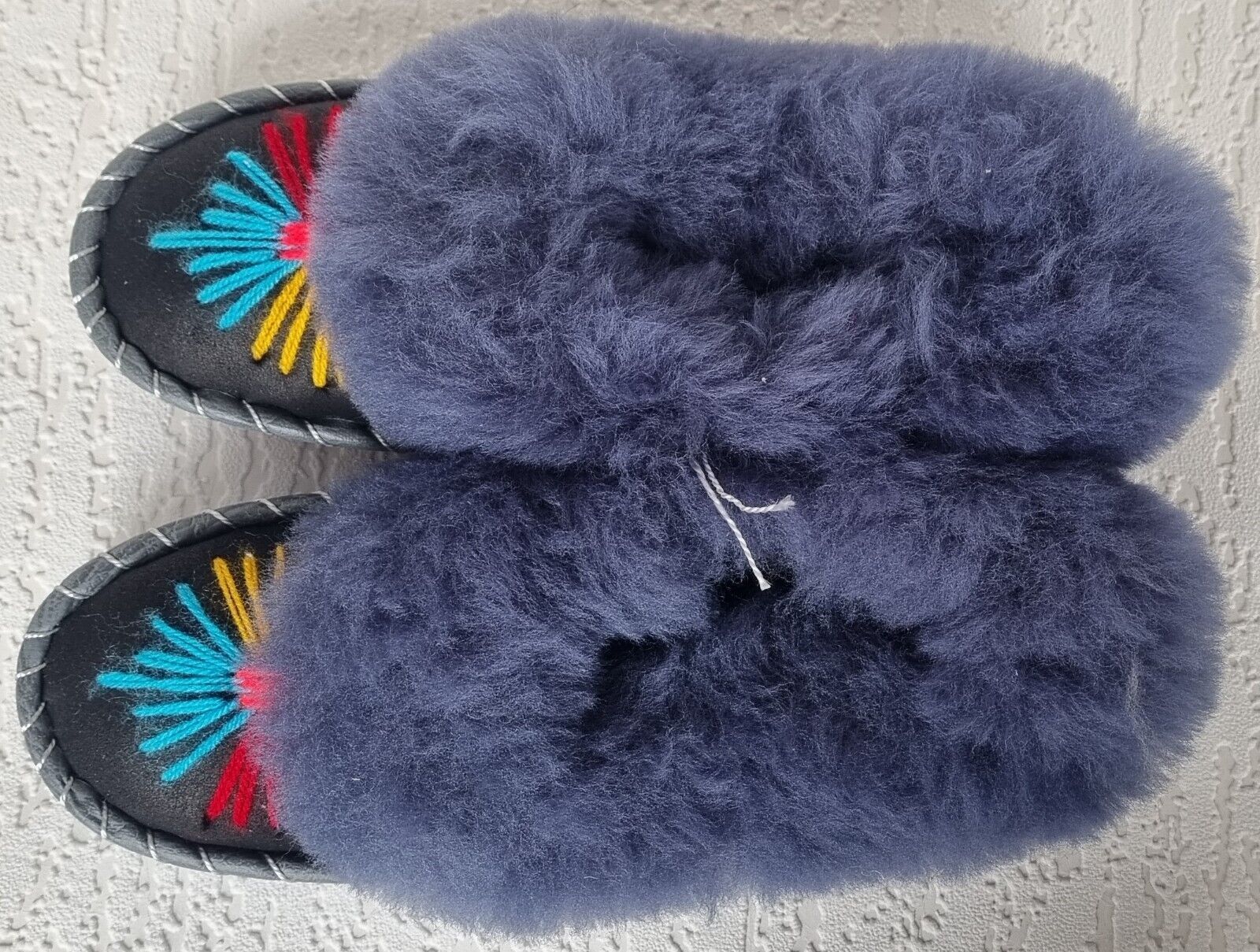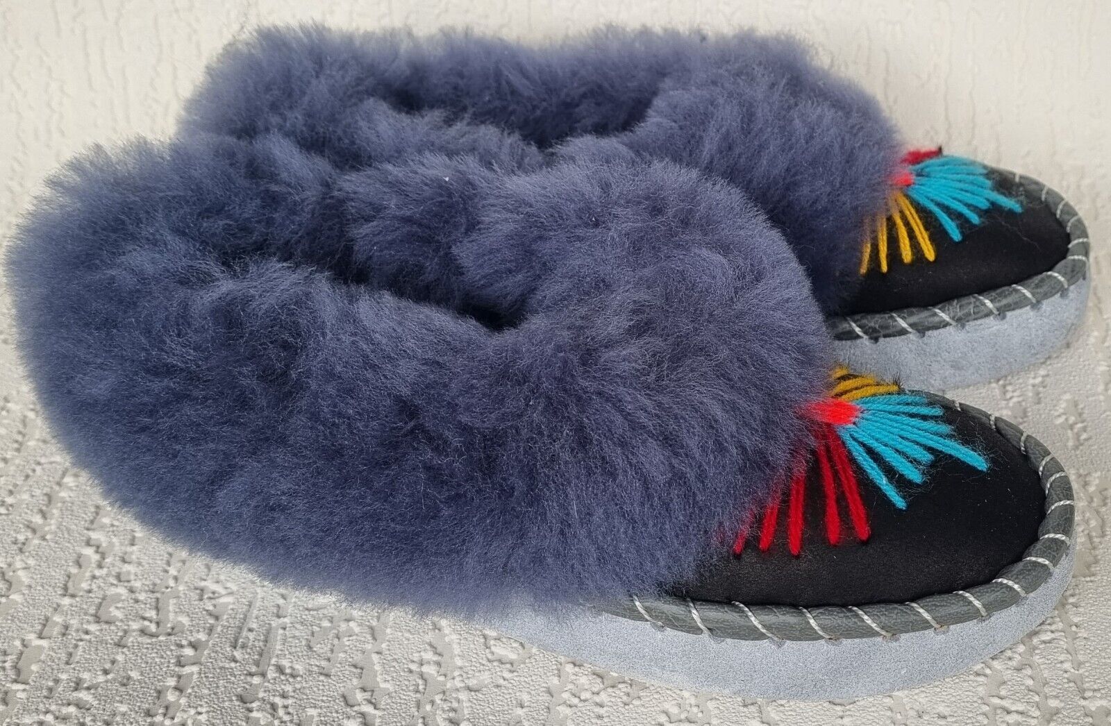 Lammfell Warme Hausschuhe Gr.34 NEU, Schaffell/ -leder Handarbeit Bestickt (608-2zz