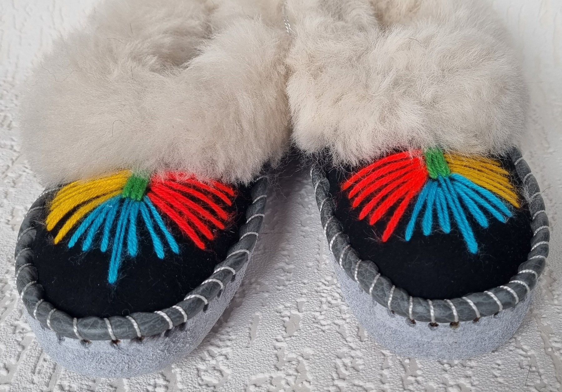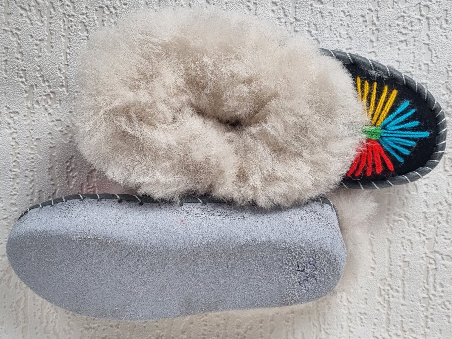 Lammfell Warme Hausschuhe Gr.34 NEU, Schaffell/ -leder Handarbeit Bestickt (608-6)