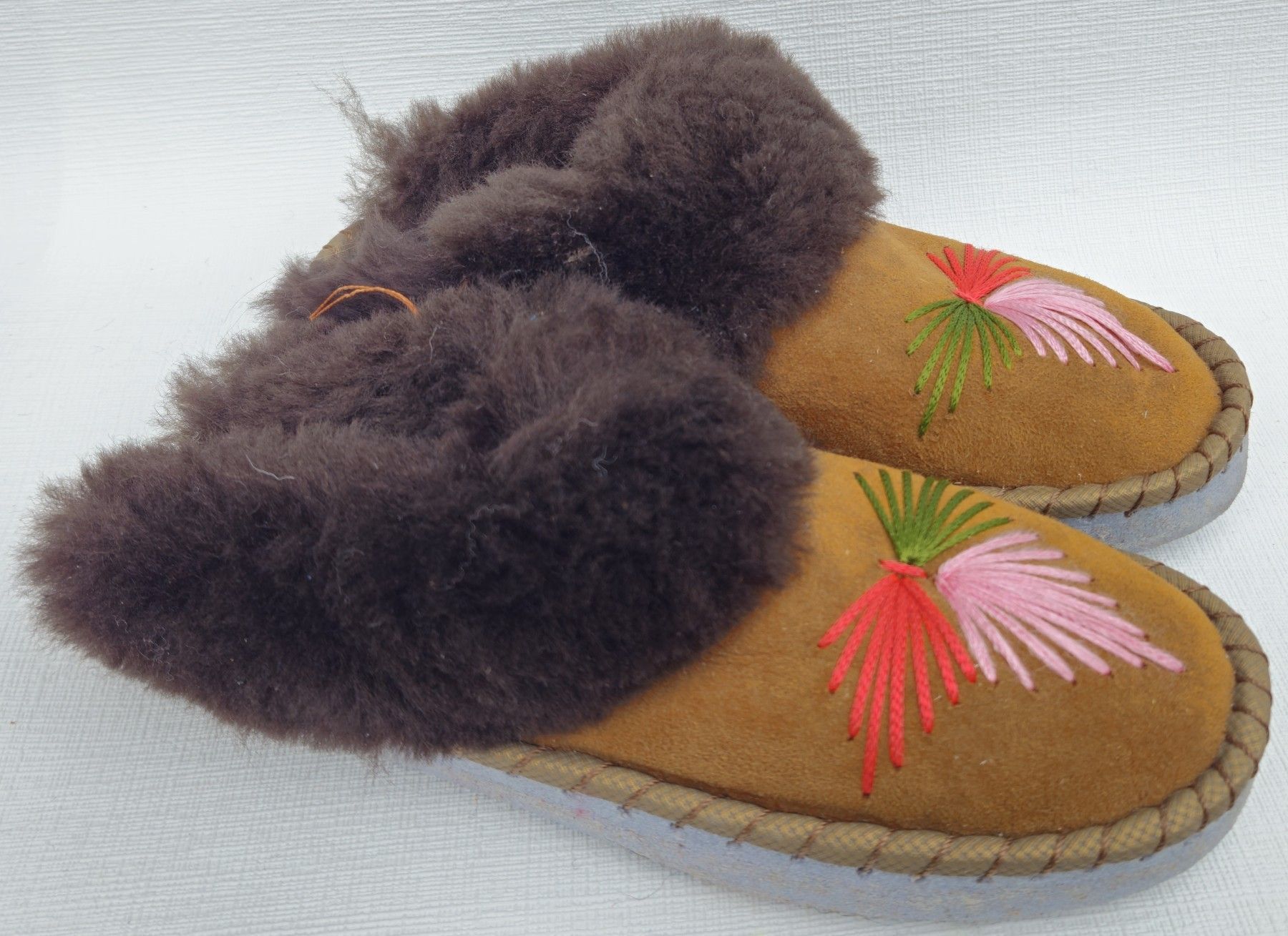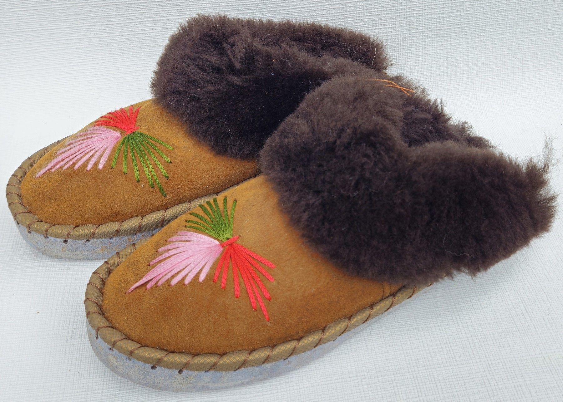 Lammfell Warme Hausschuhe Latschen Gr.39 NEU, Schaffell/ -leder Handarbeit * Braun.2*