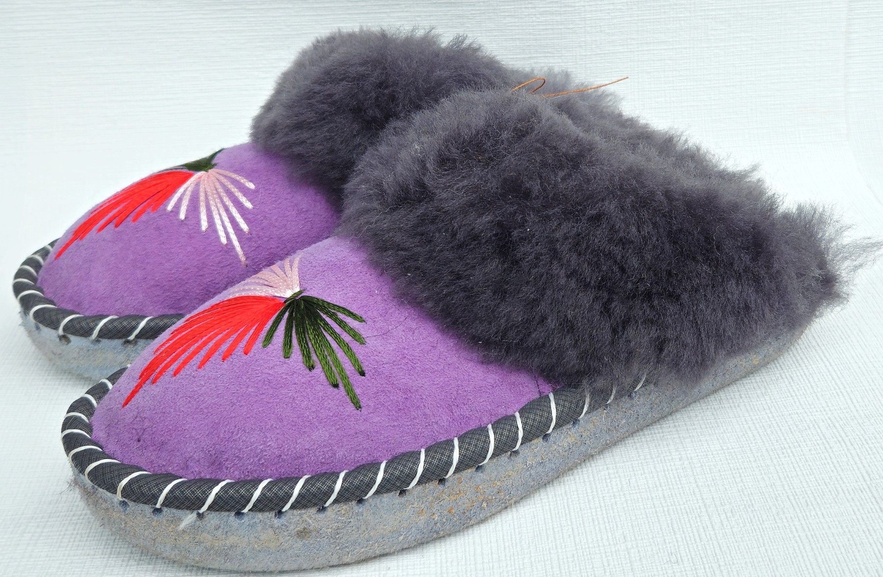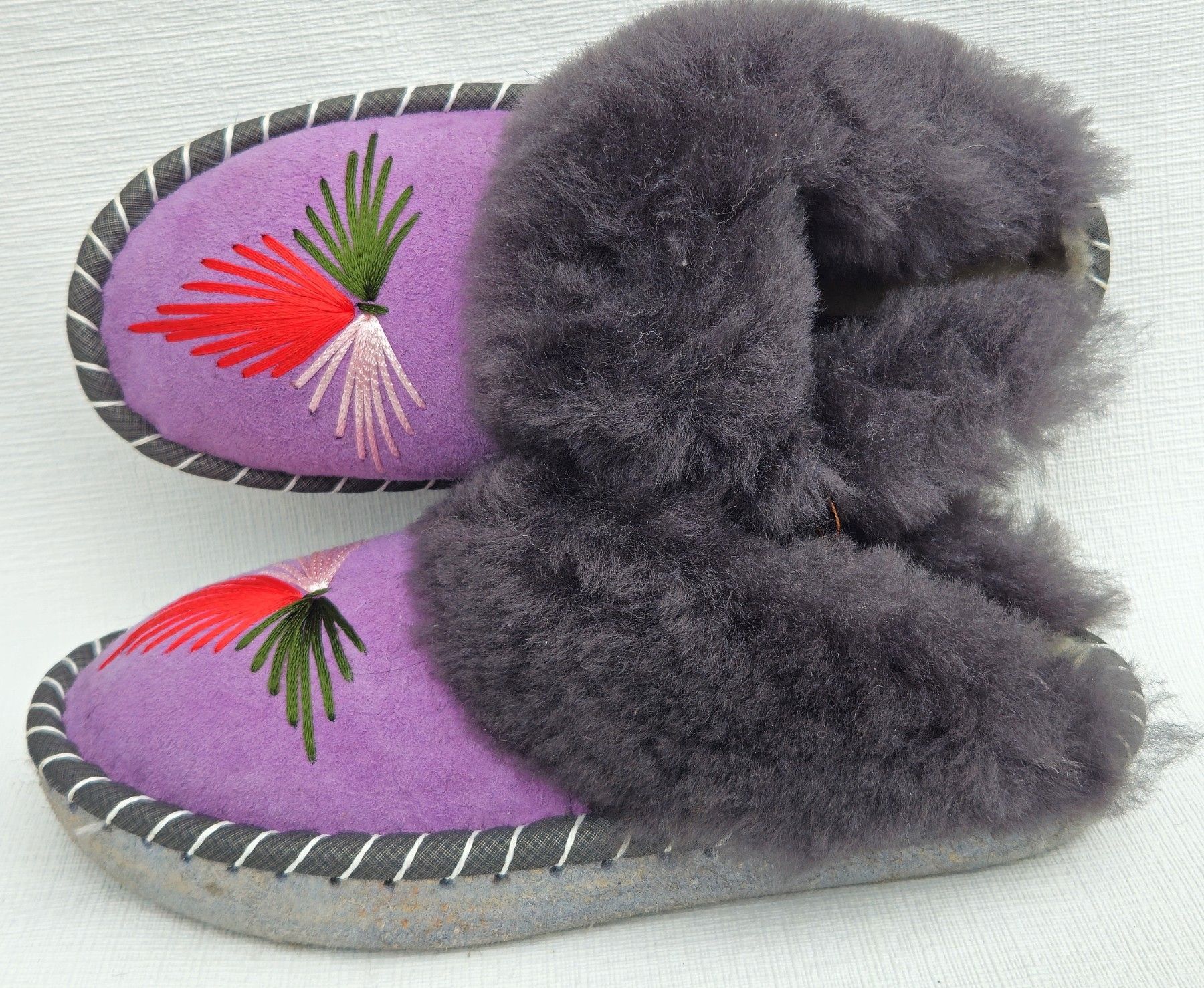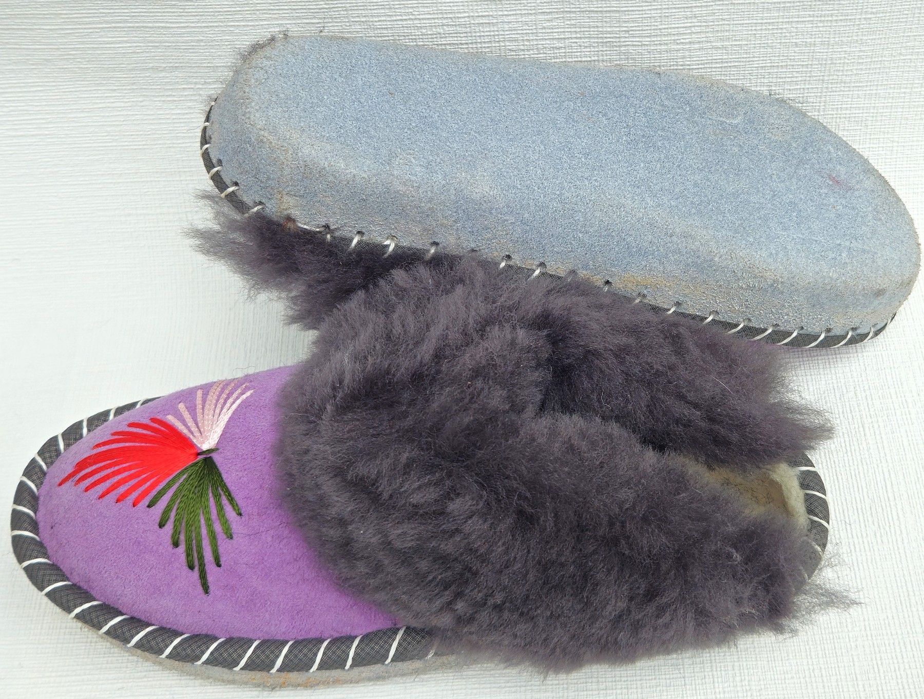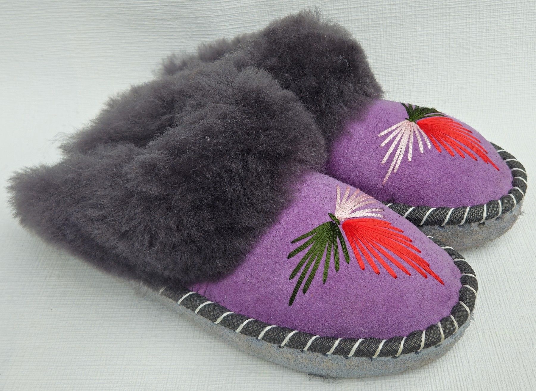 Lammfell Warme Hausschuhe Latschen Gr.39 NEU, Schaffell/ -leder Handarbeit * Lila*