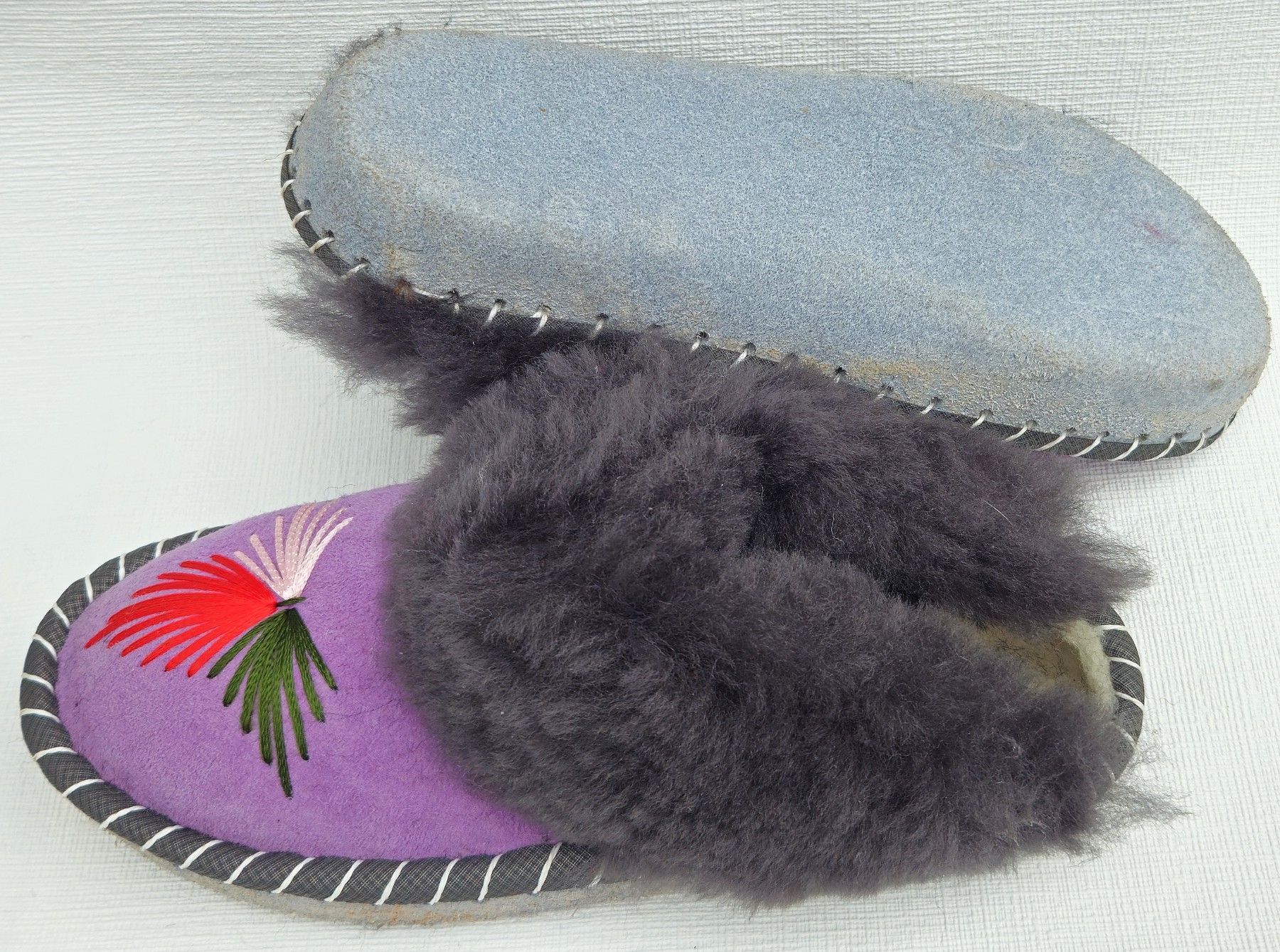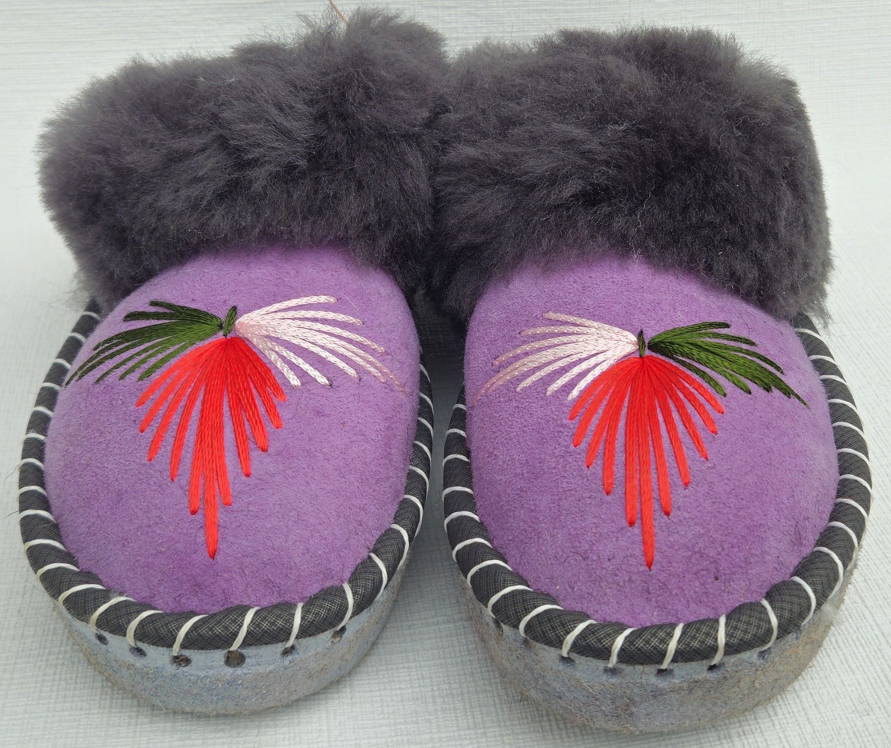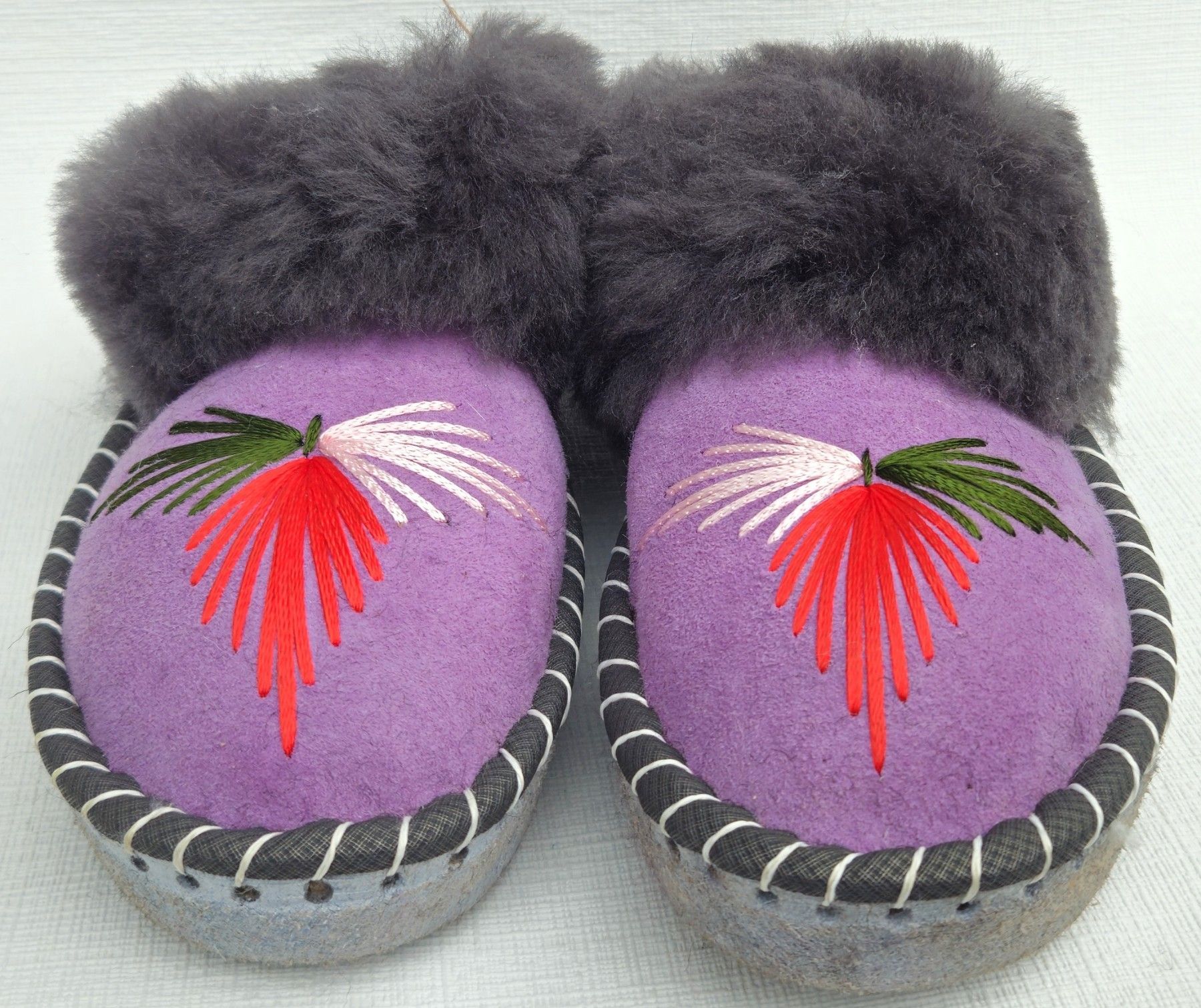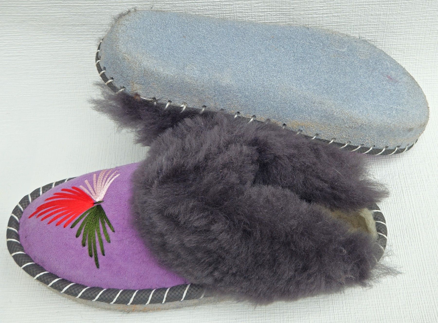 Lammfell Warme Hausschuhe Latschen Gr.39 NEU, Schaffell/ -leder Handarbeit * Lila*