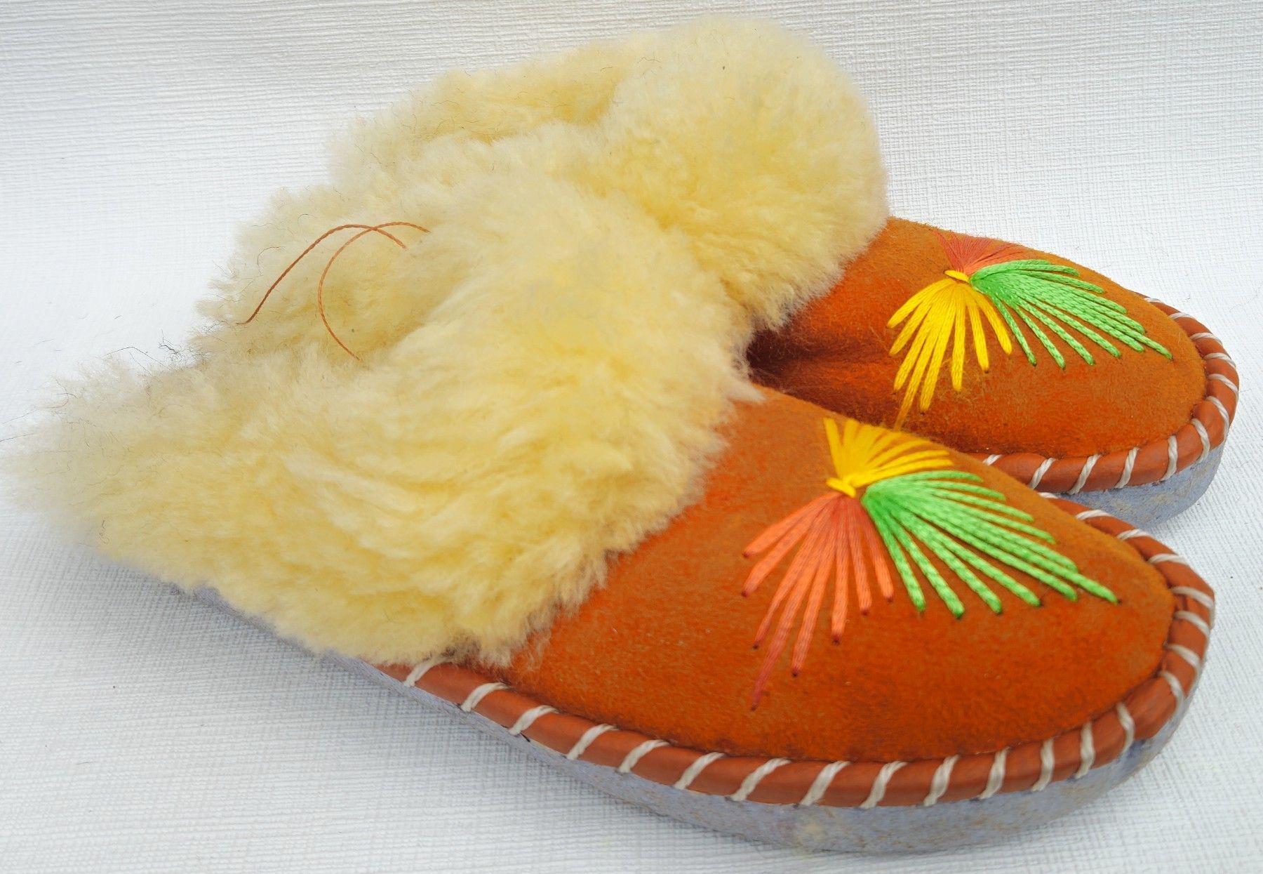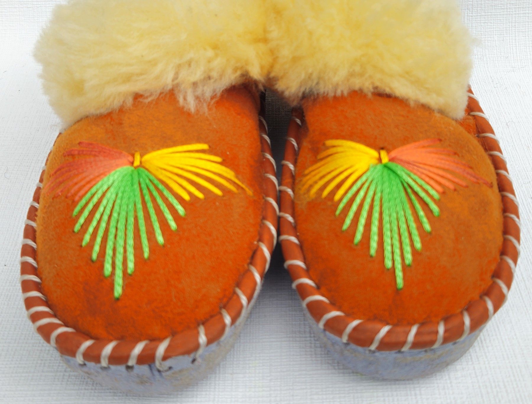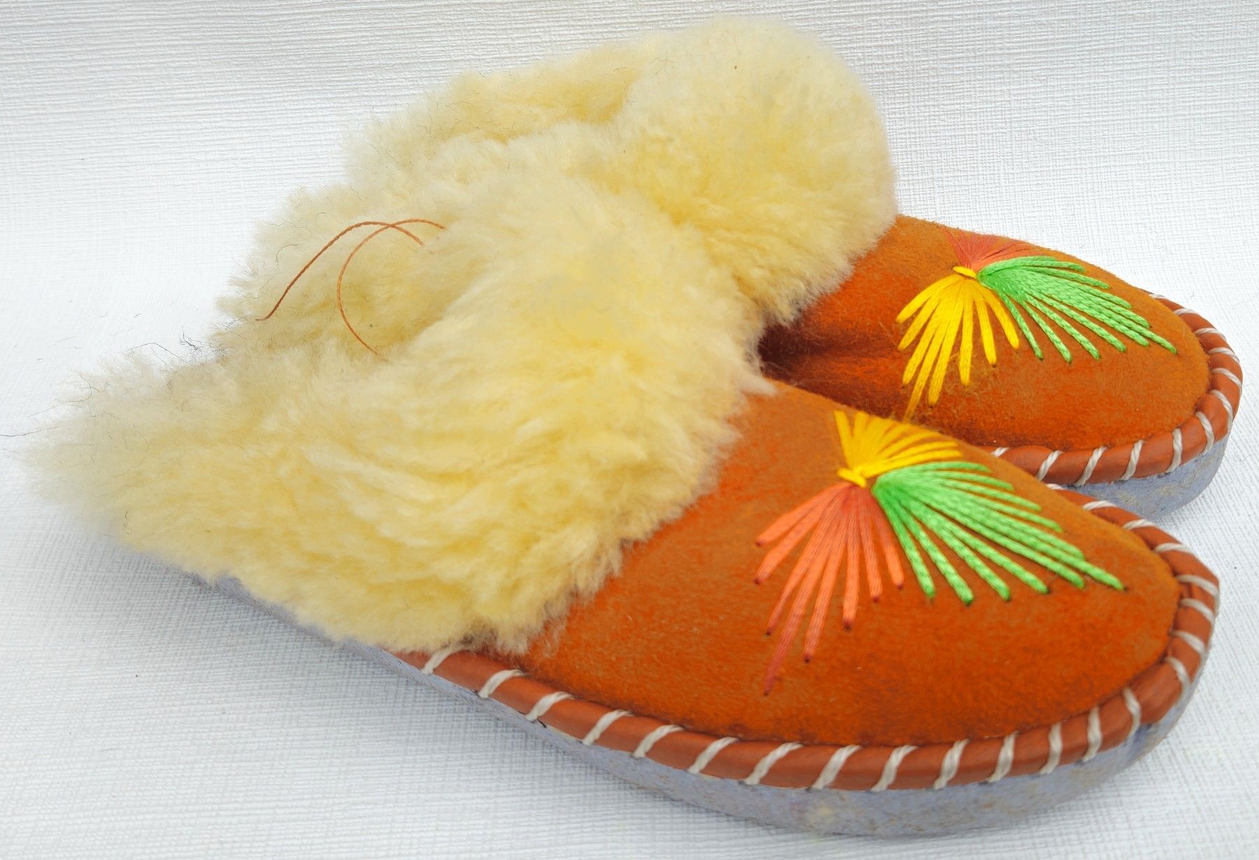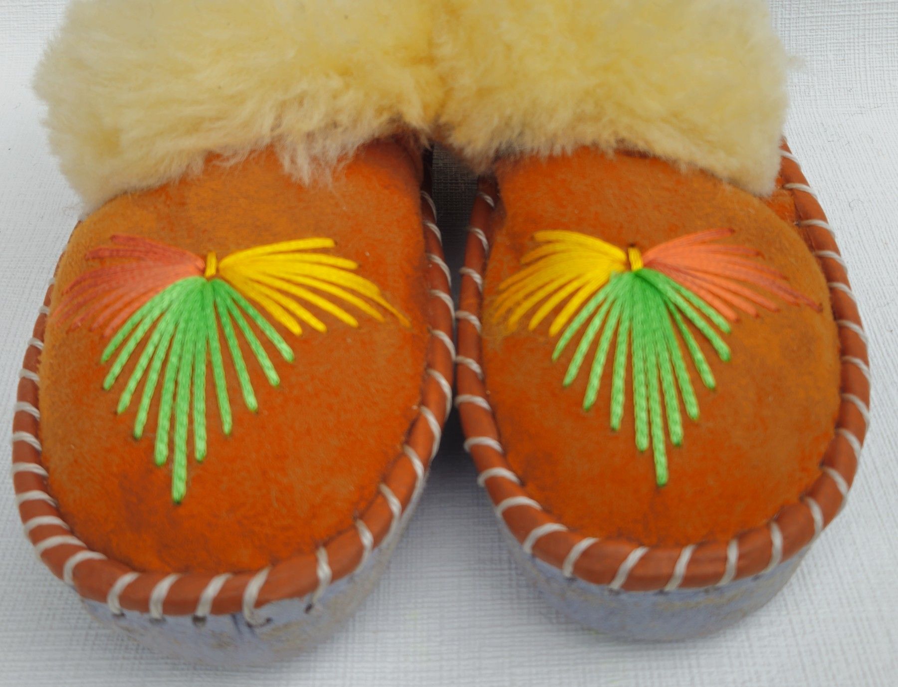 Lammfell Warme Hausschuhe Latschen Gr.39 NEU, Schaffell/ -leder Handarbeit * Orange*
