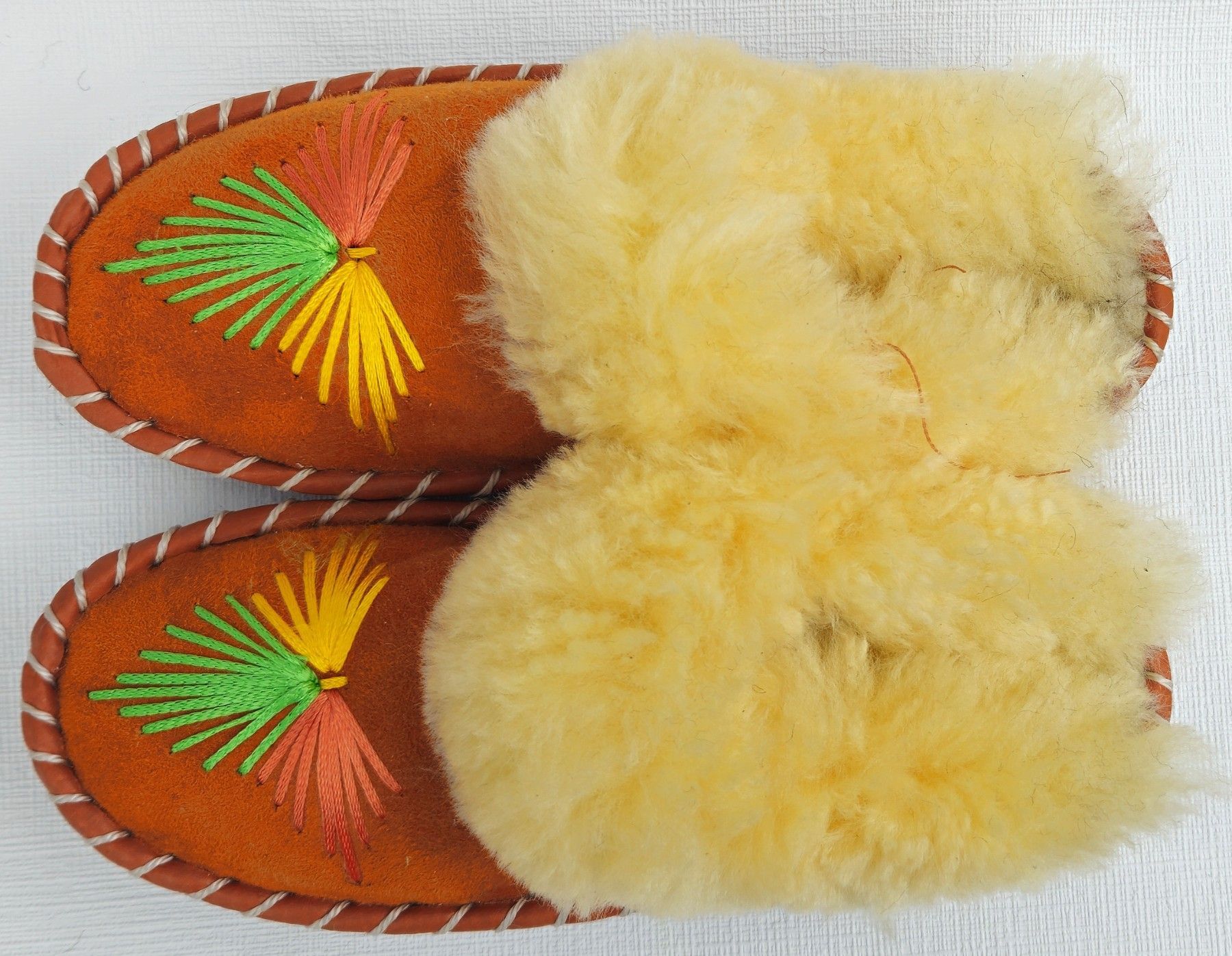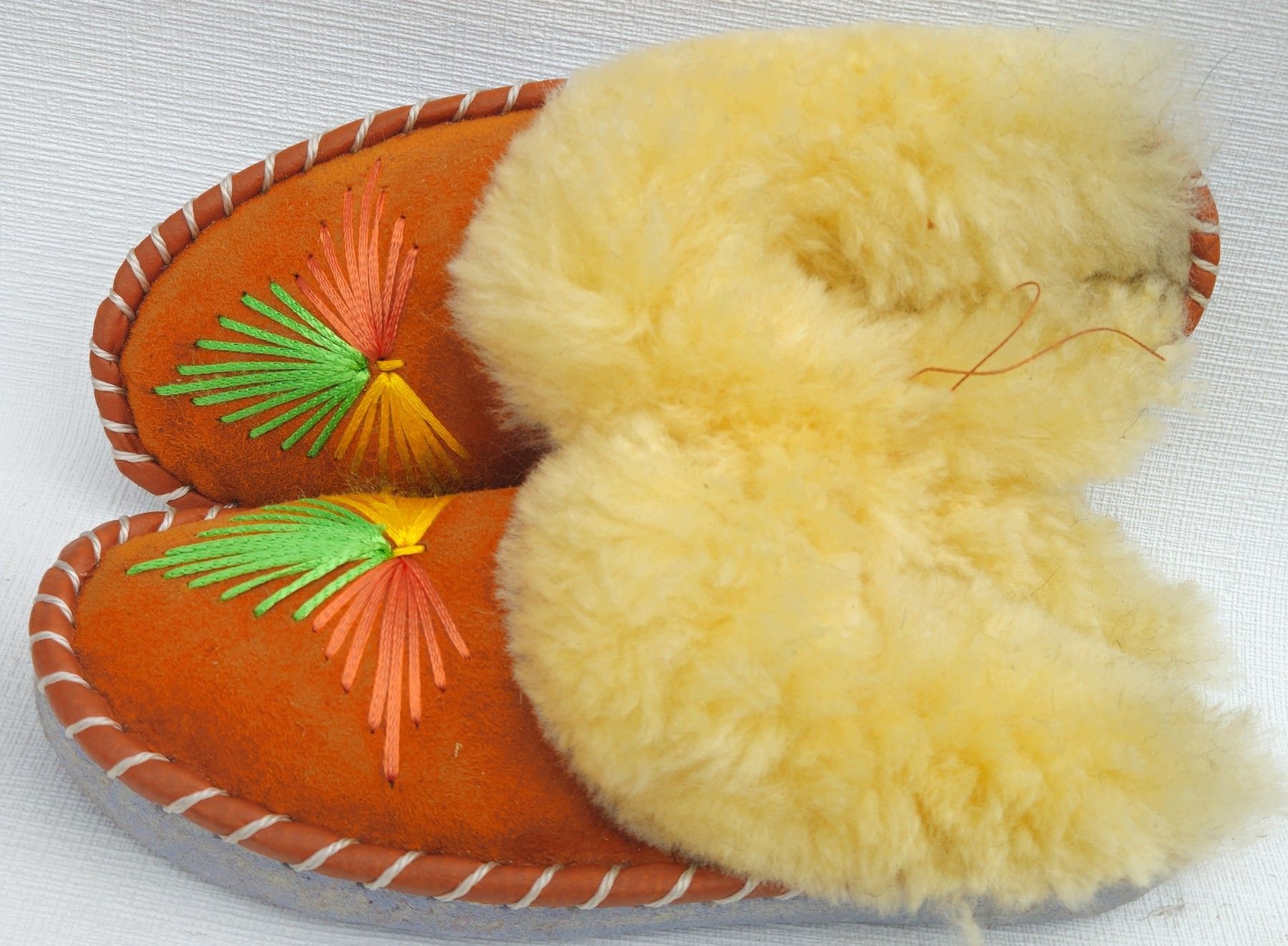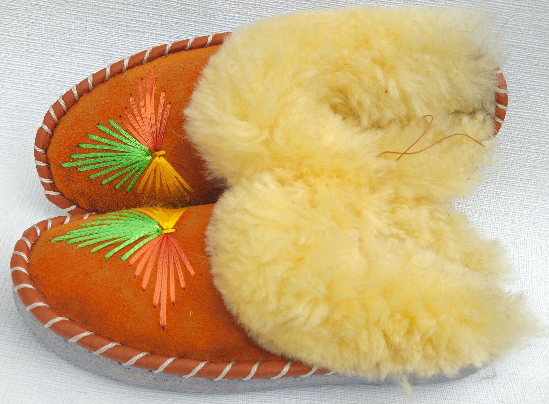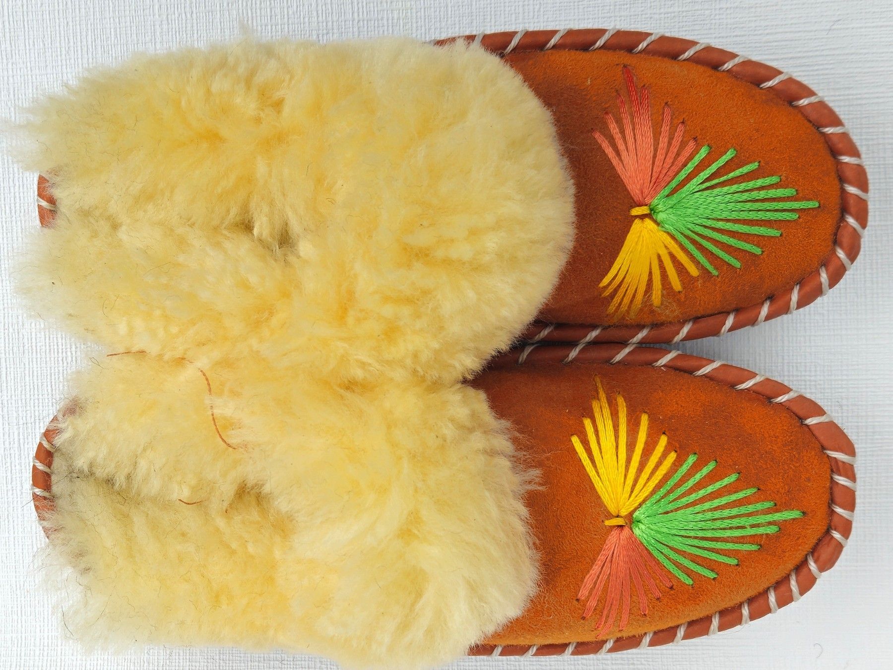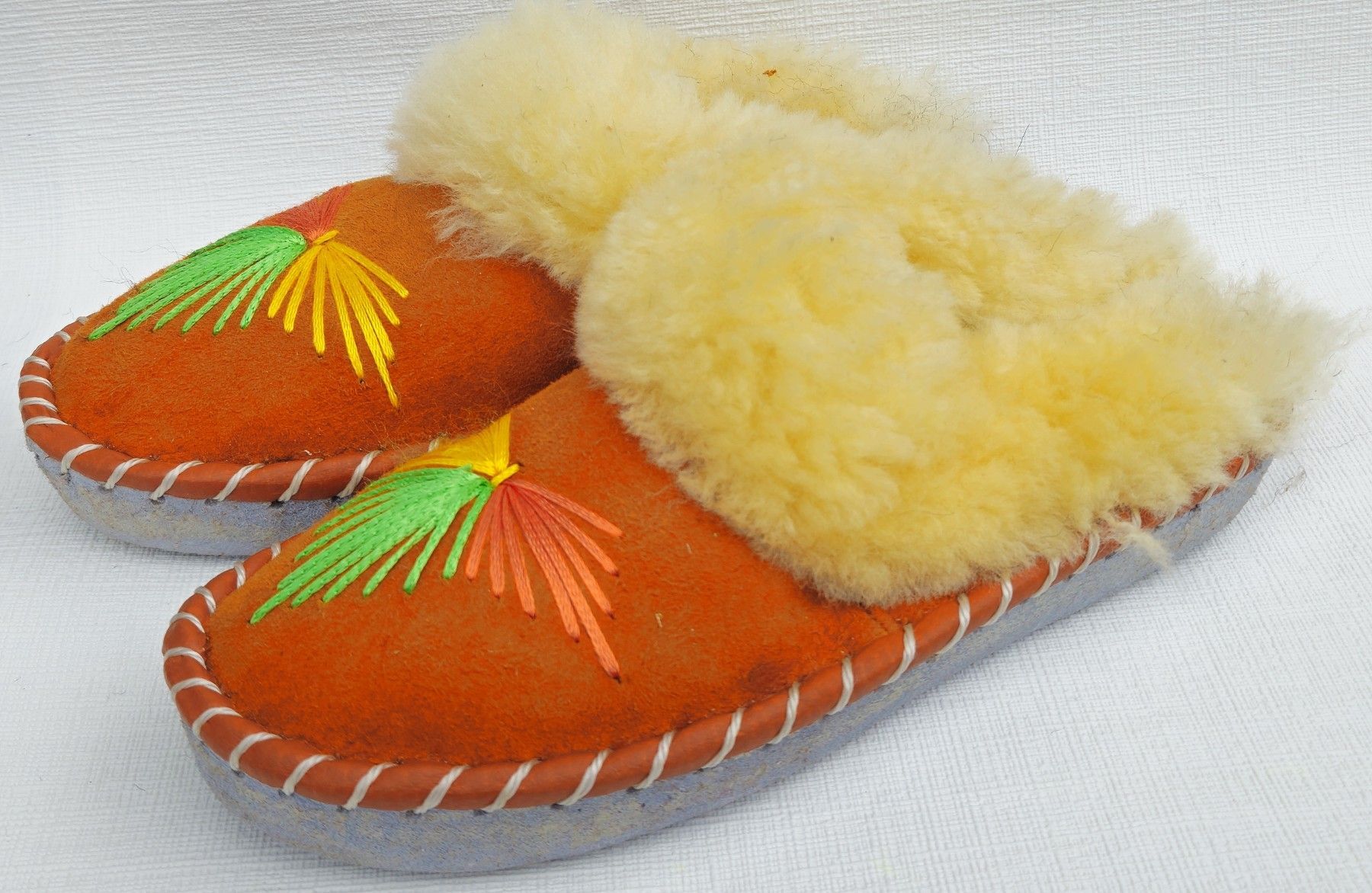 Lammfell Warme Hausschuhe Latschen Gr.39 NEU, Schaffell/ -leder Handarbeit * Orange*