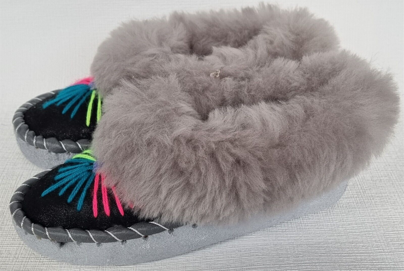 Lammfell Warme Hausschuhe Mokassin Gr.34 NEU Schaffell/ leder Handarbeit (03.686)