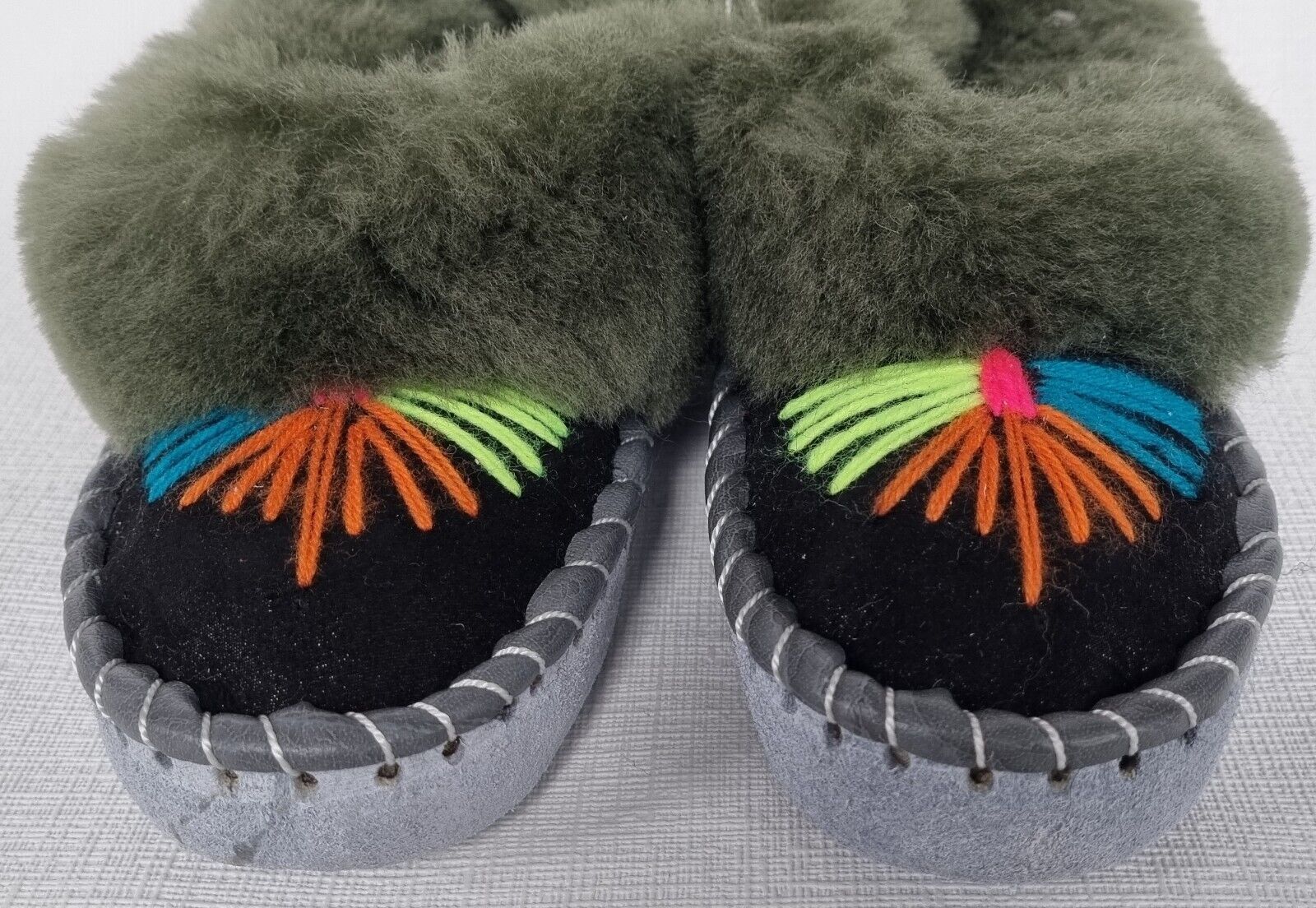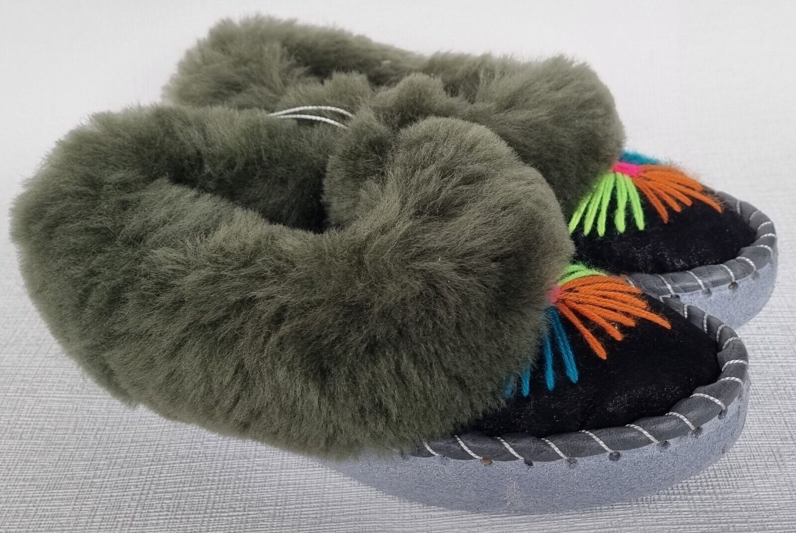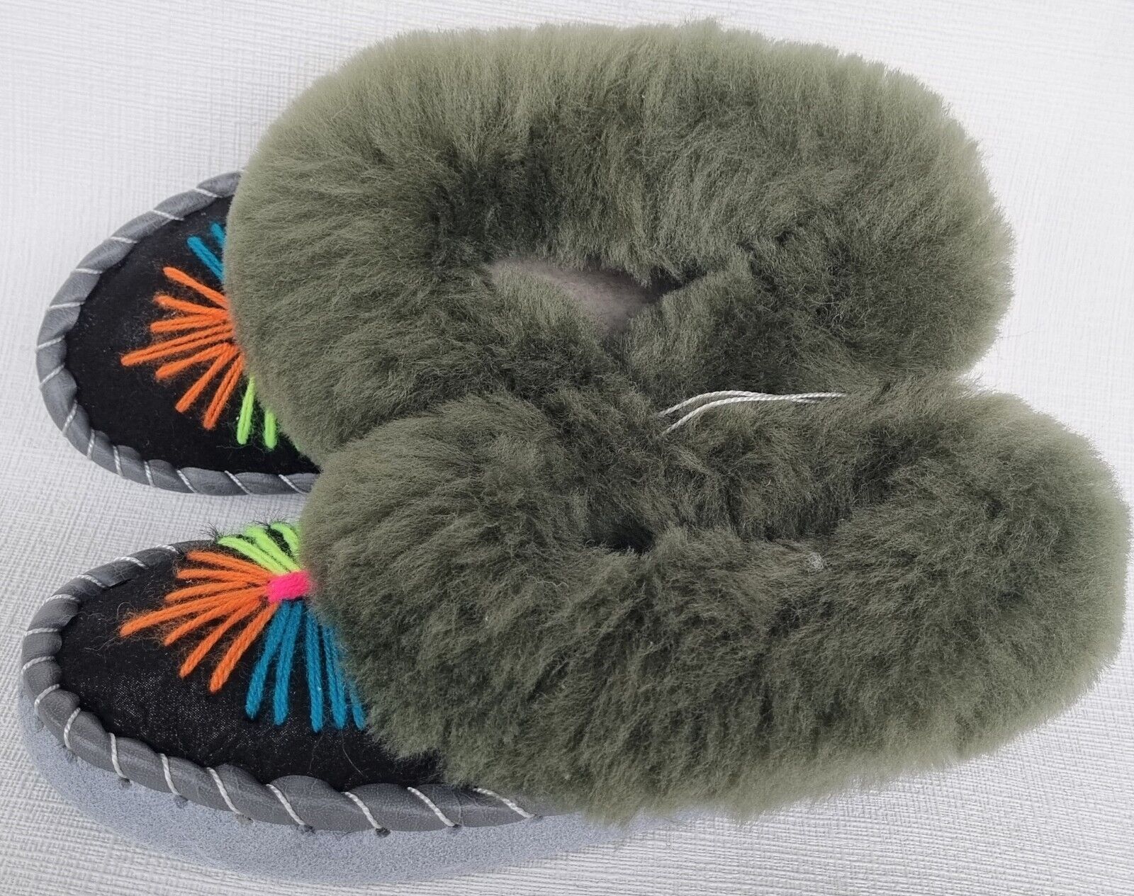 Lammfell Warme Hausschuhe Mokassin Gr.34 NEU Schaffell/ leder Handarbeit (07.686)