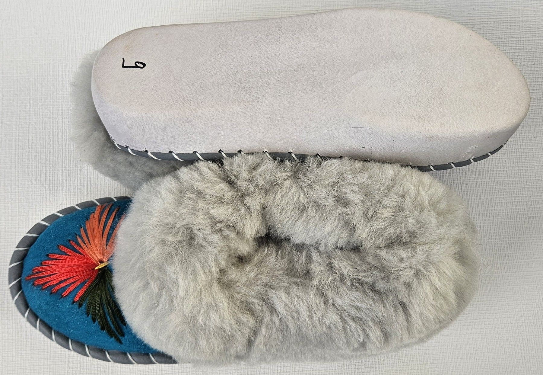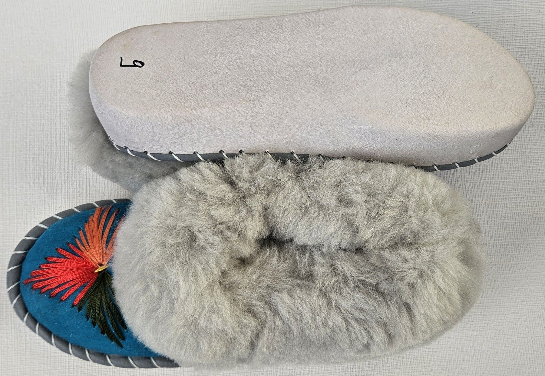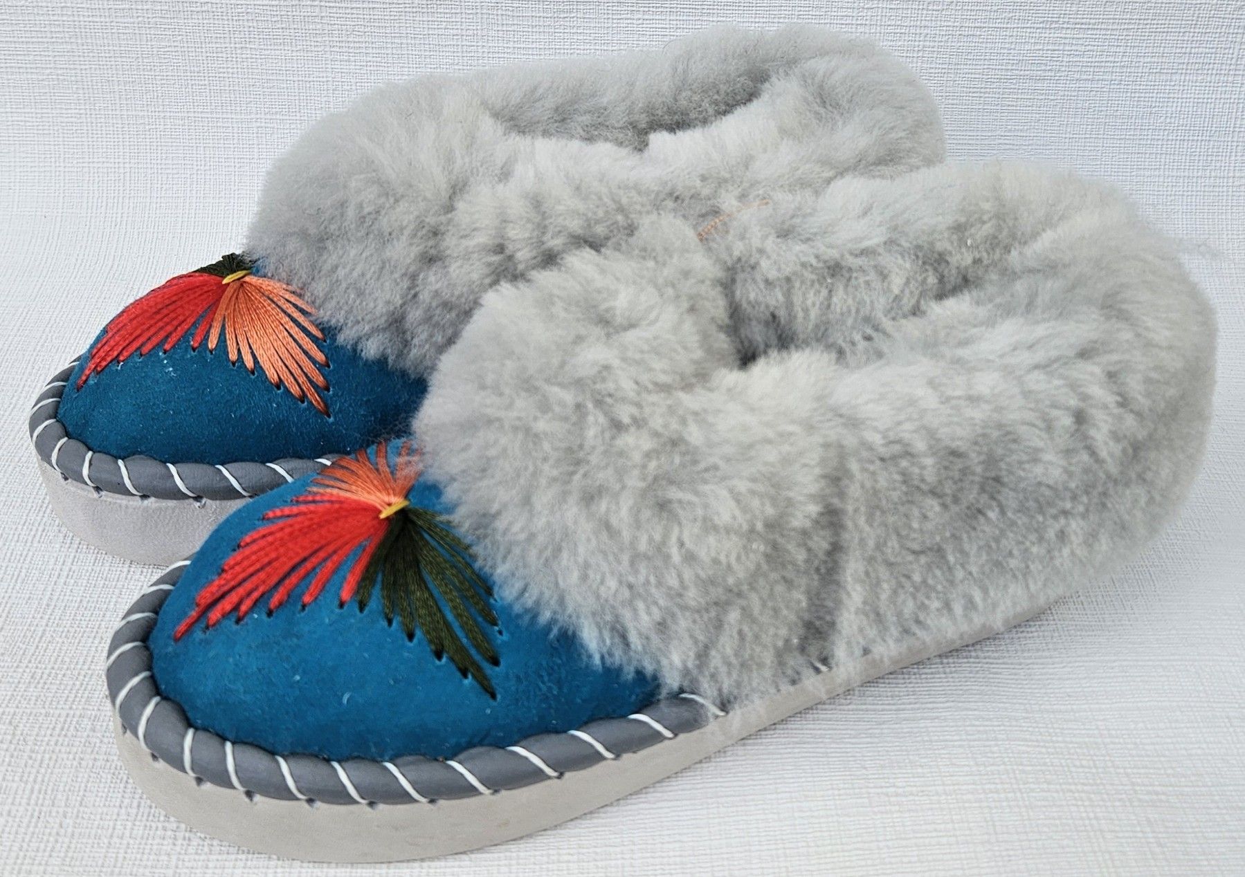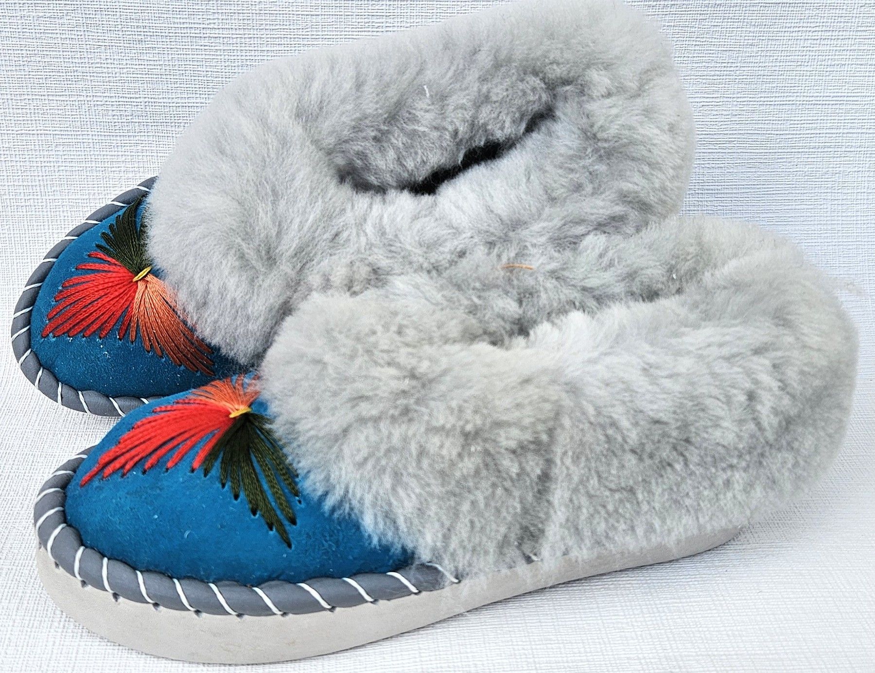 Lammfell Warme Hausschuhe Mokassin Gr.38 NEU, Schaffell/ -leder Handarbeit * BLAU*25